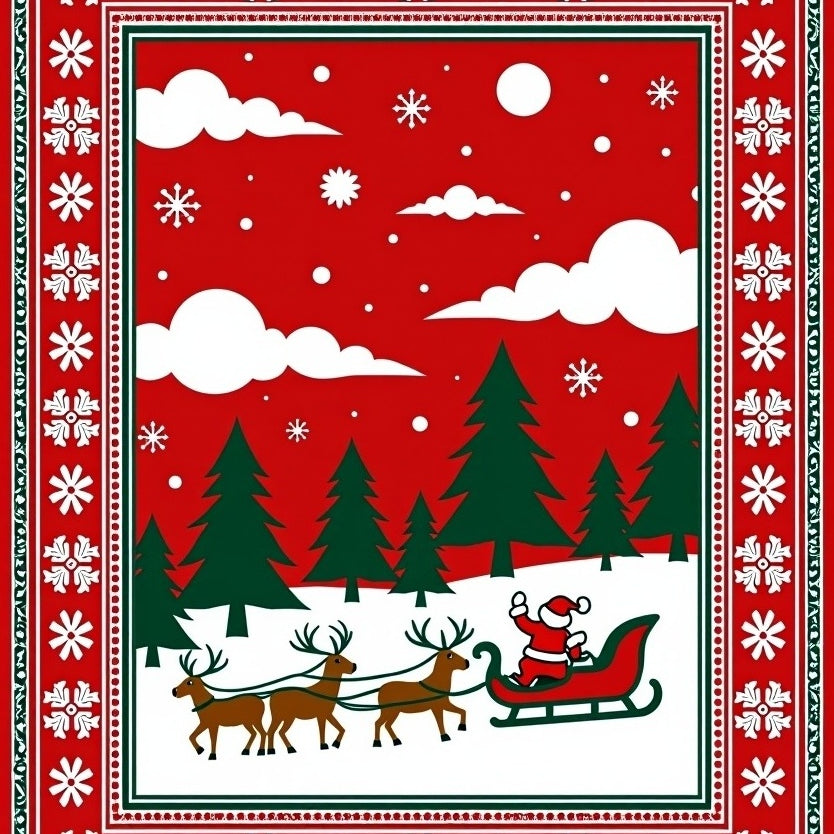 Nordic Winter Forest Scene with Santa Sleigh and Reindeer Motif(Red)