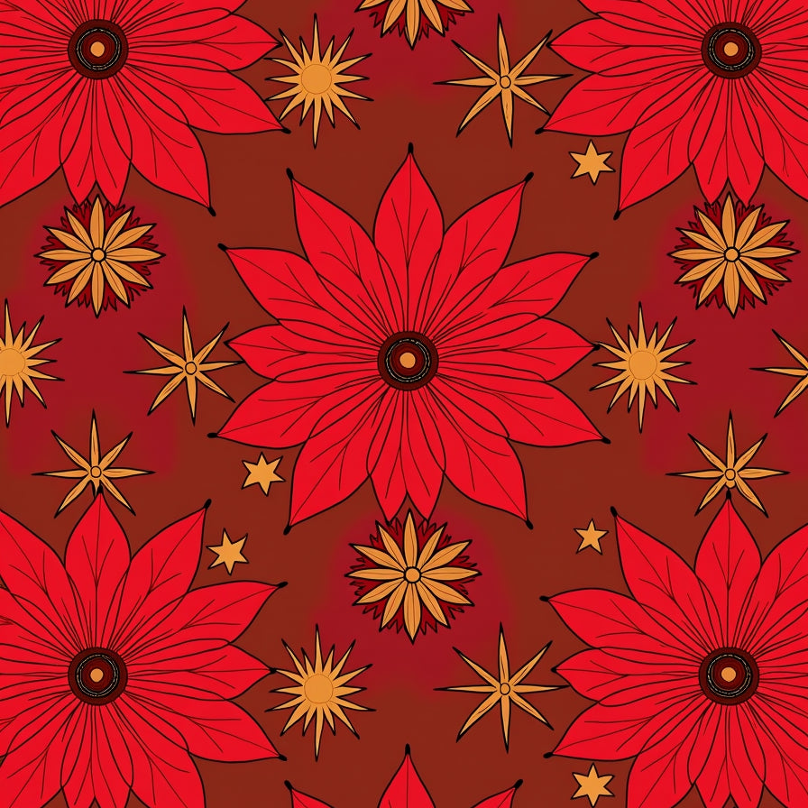 Vintage Poinsettia Bloom Pathway with Golden Stars(Red)