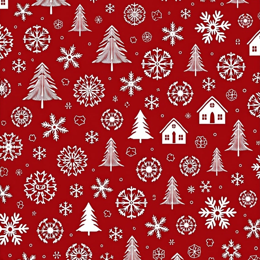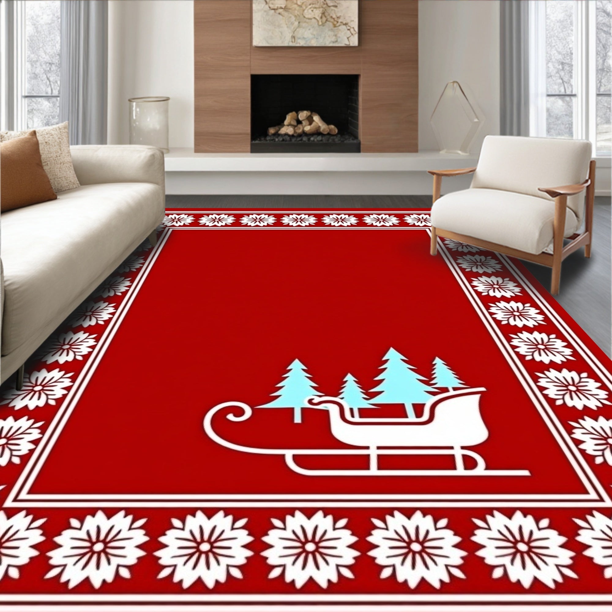 Nordic Winter Wonderland with Santa Sleigh and Pine Forest Motif(Red)