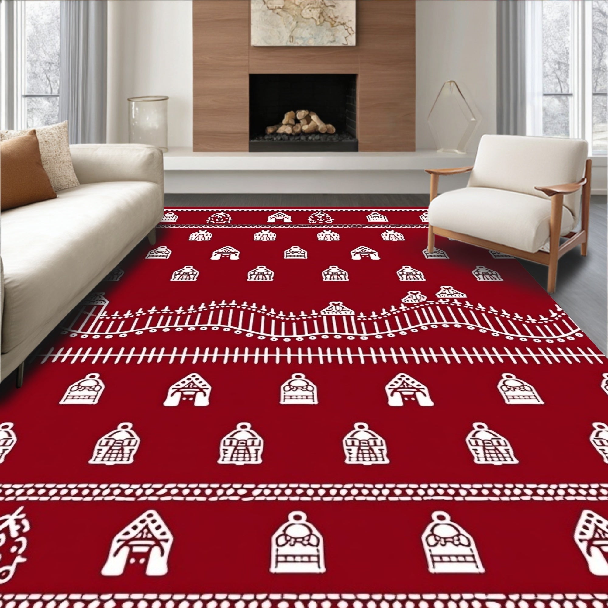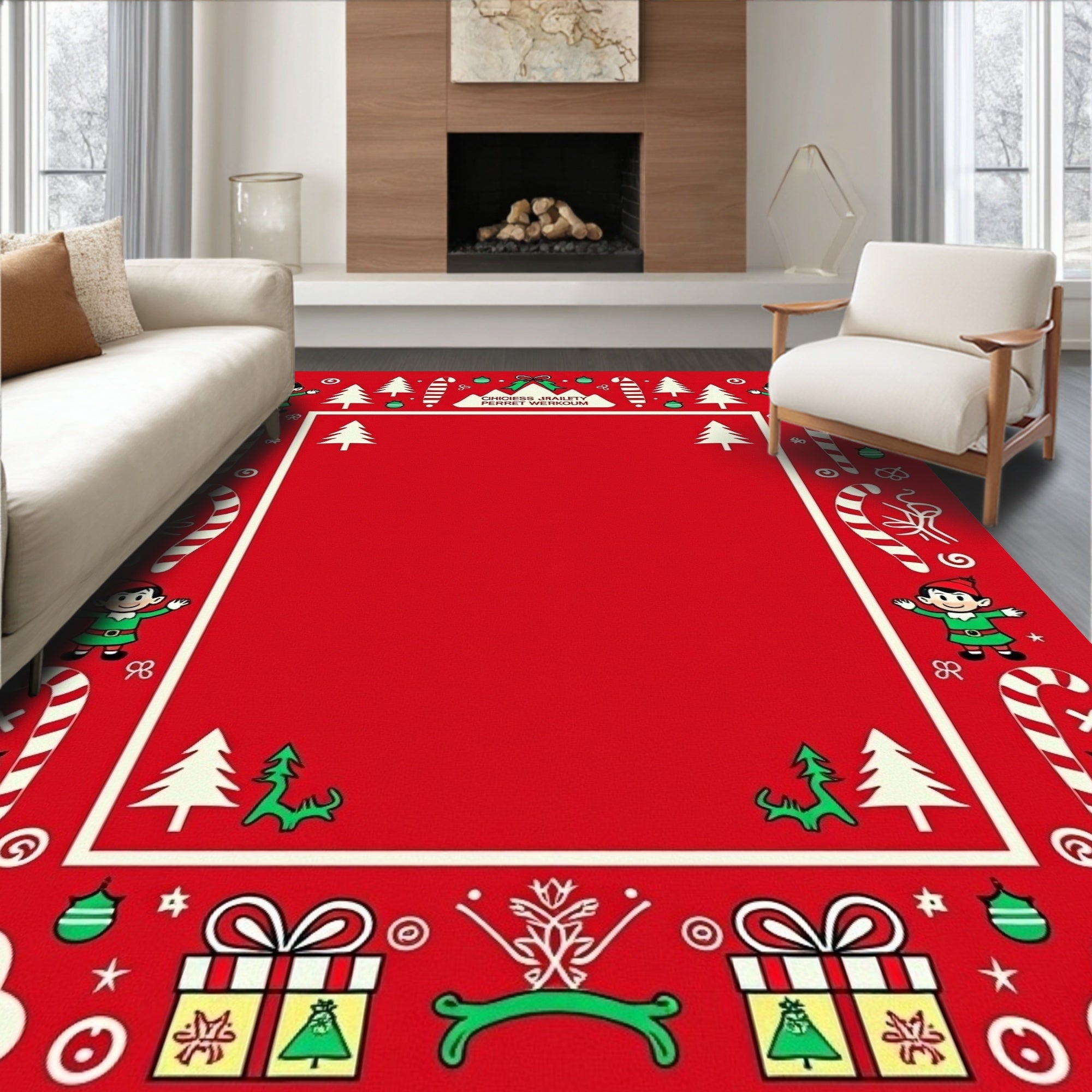 Joyful Season Greeting Pathway Accent With Festive Illustrations(Red)