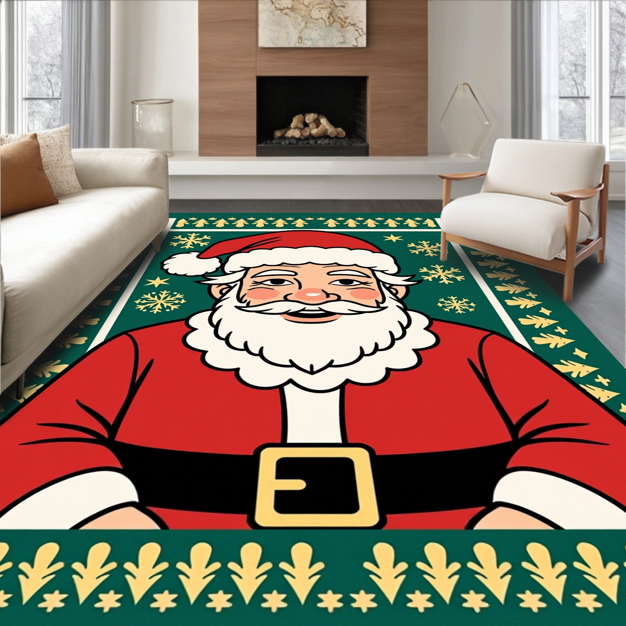 Festive Santa Claus Portrait Christmas Holiday Decorative Area(Green)