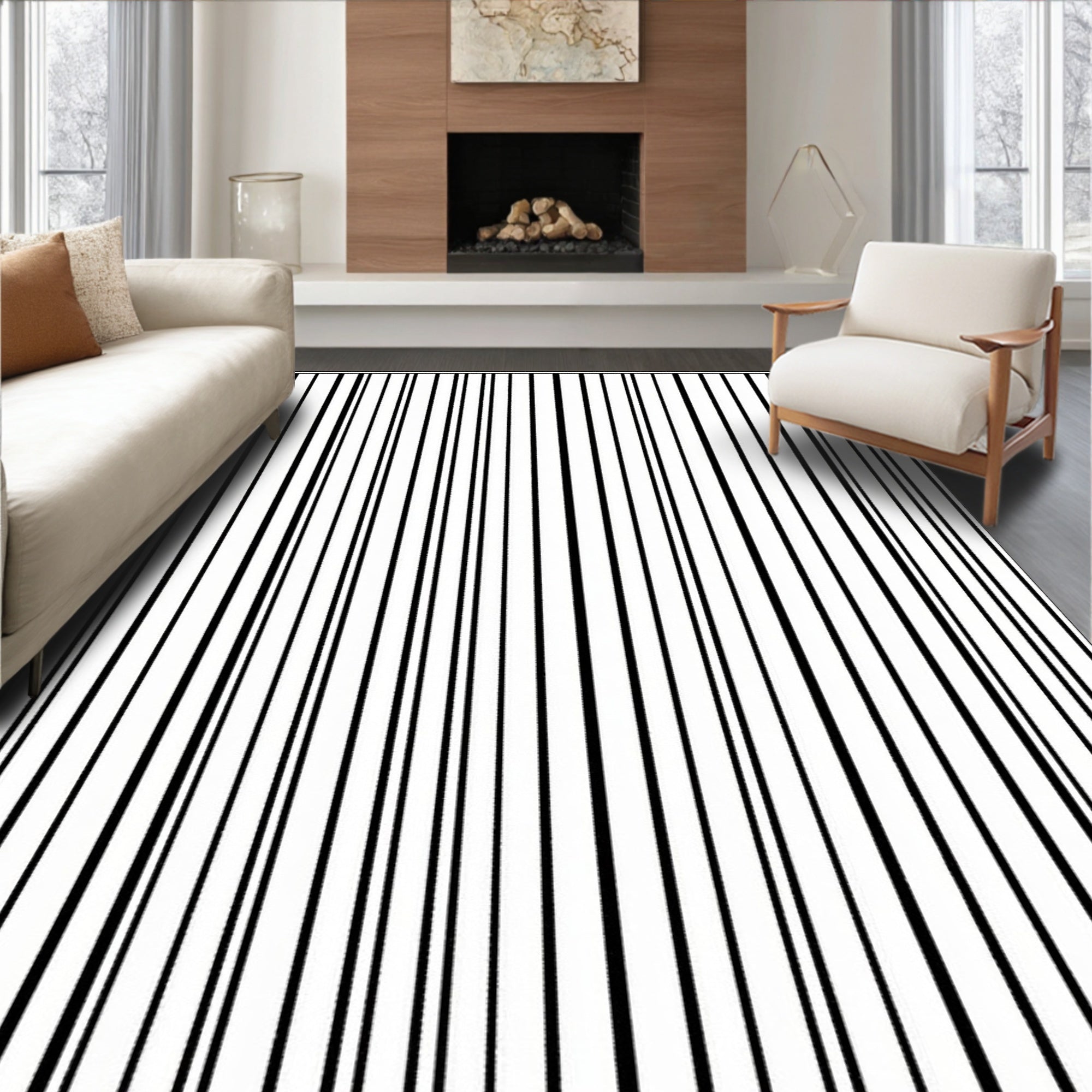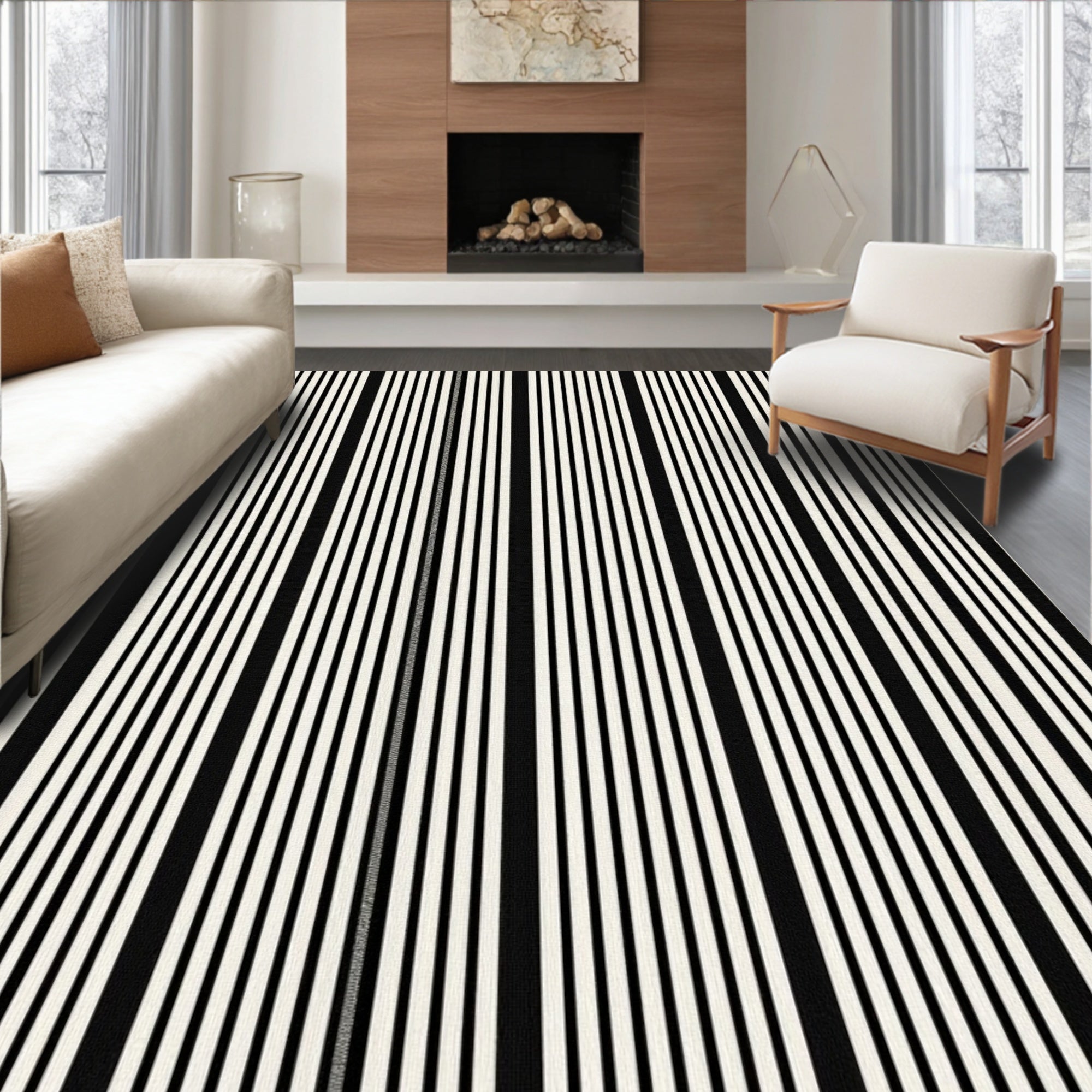 Bold Monochrome Striped Welcome Entry(Black)