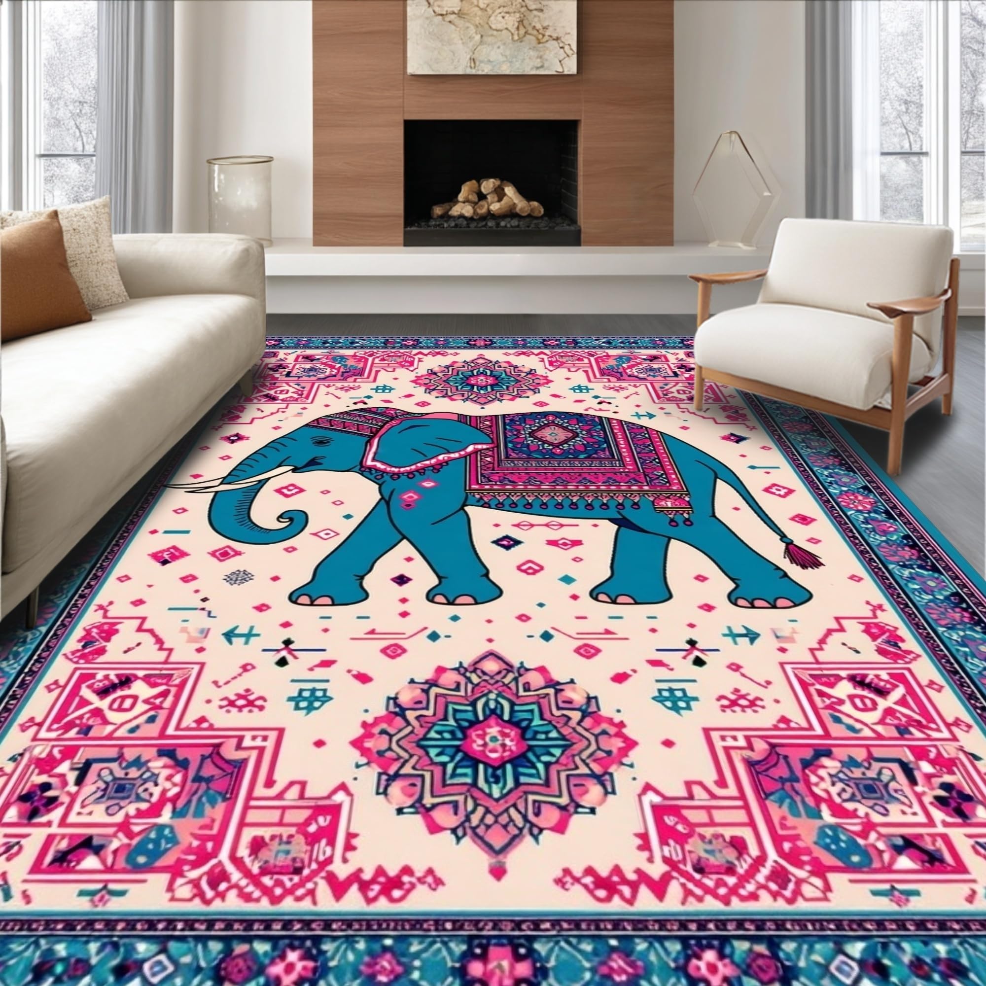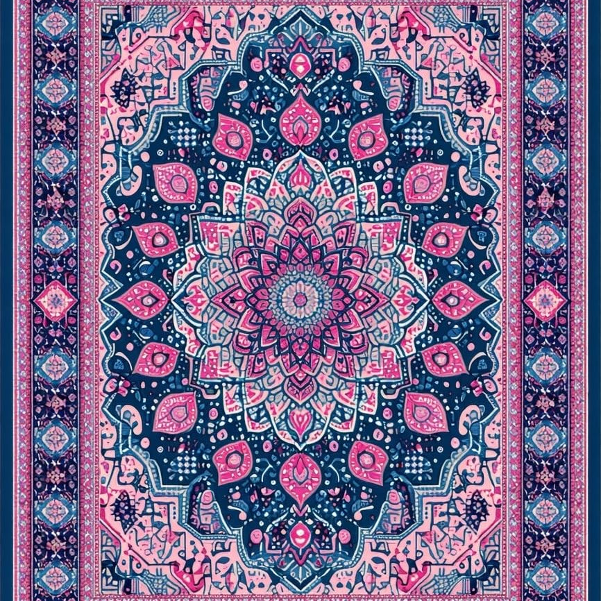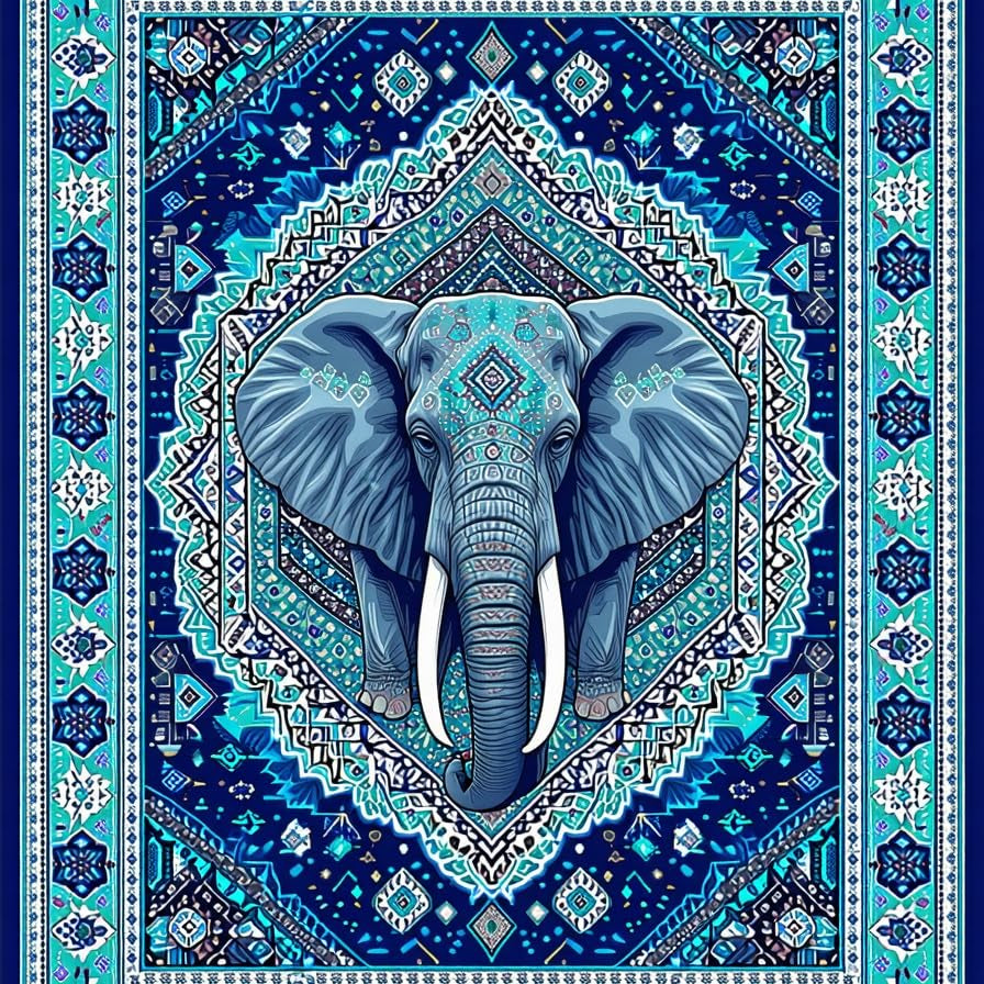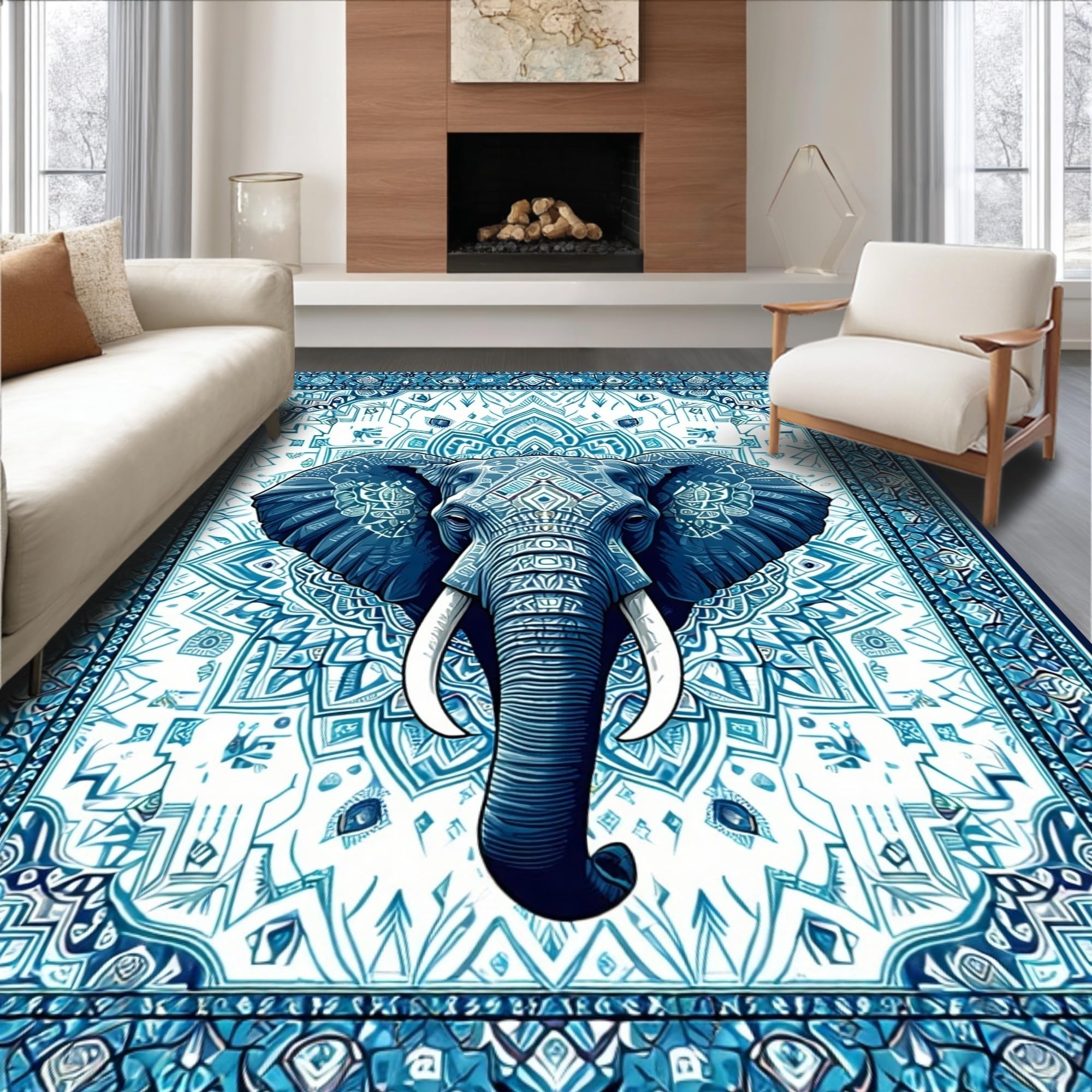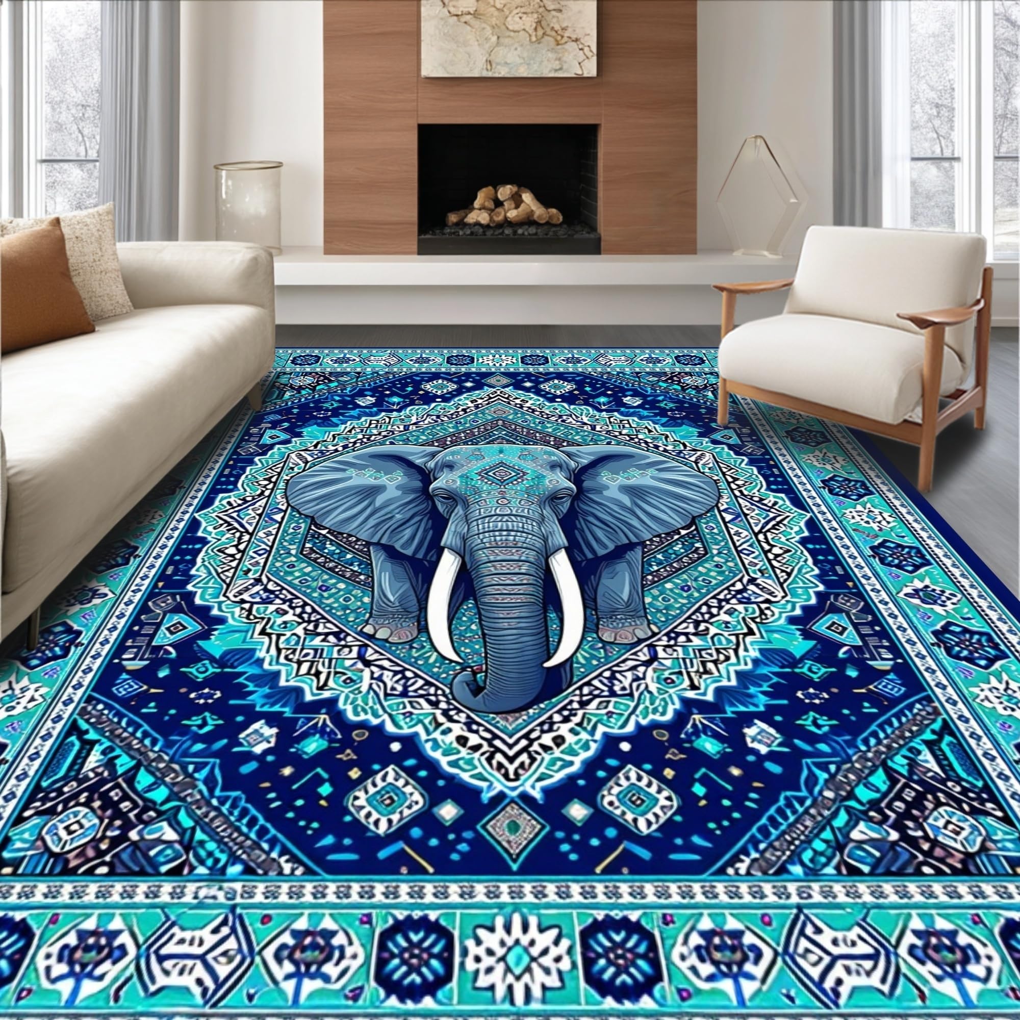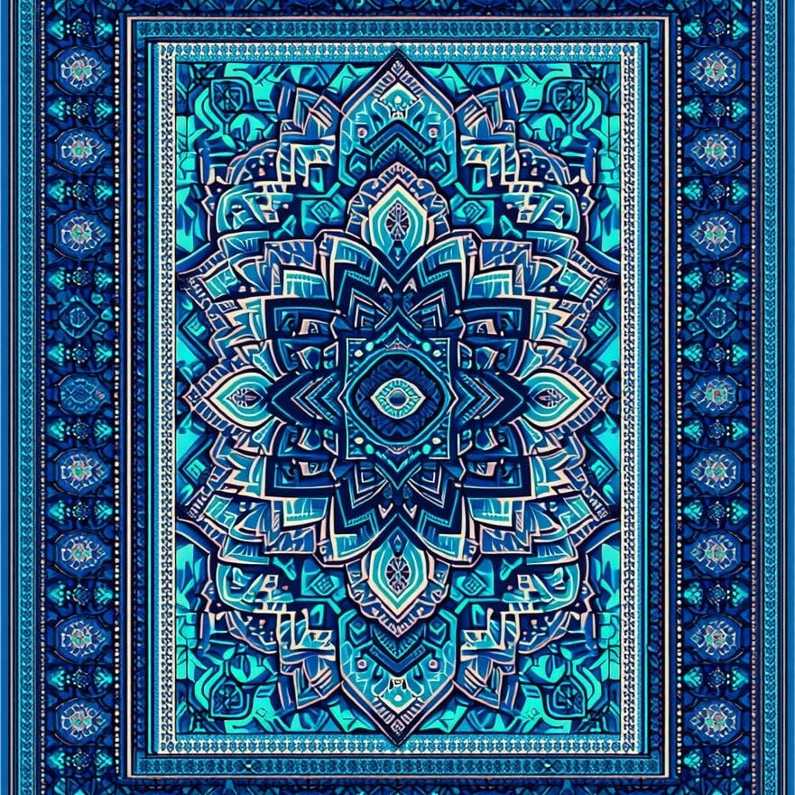 Ethnic Symbolic Patterned Floor Covering(Blue)