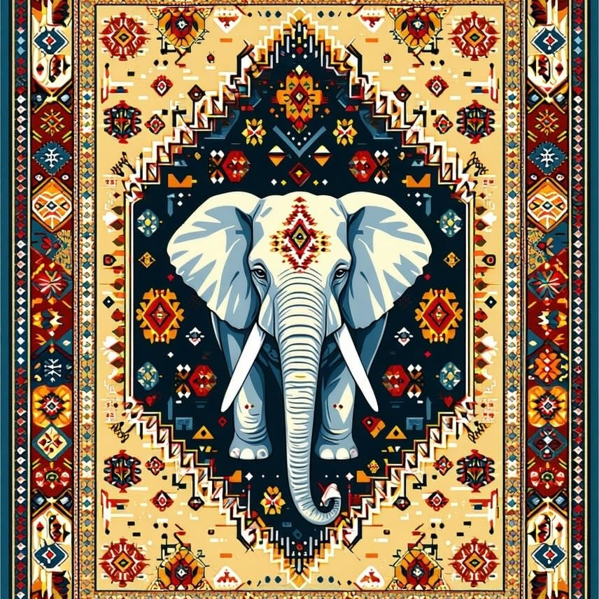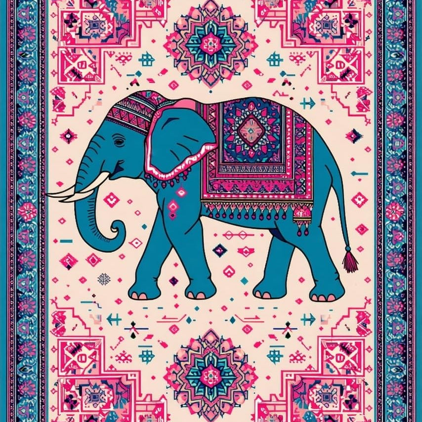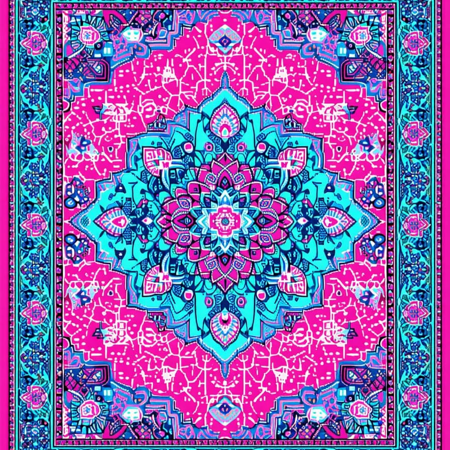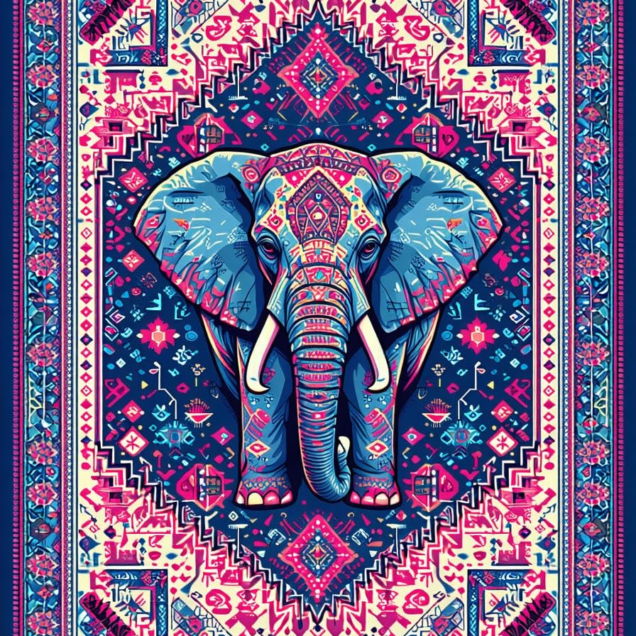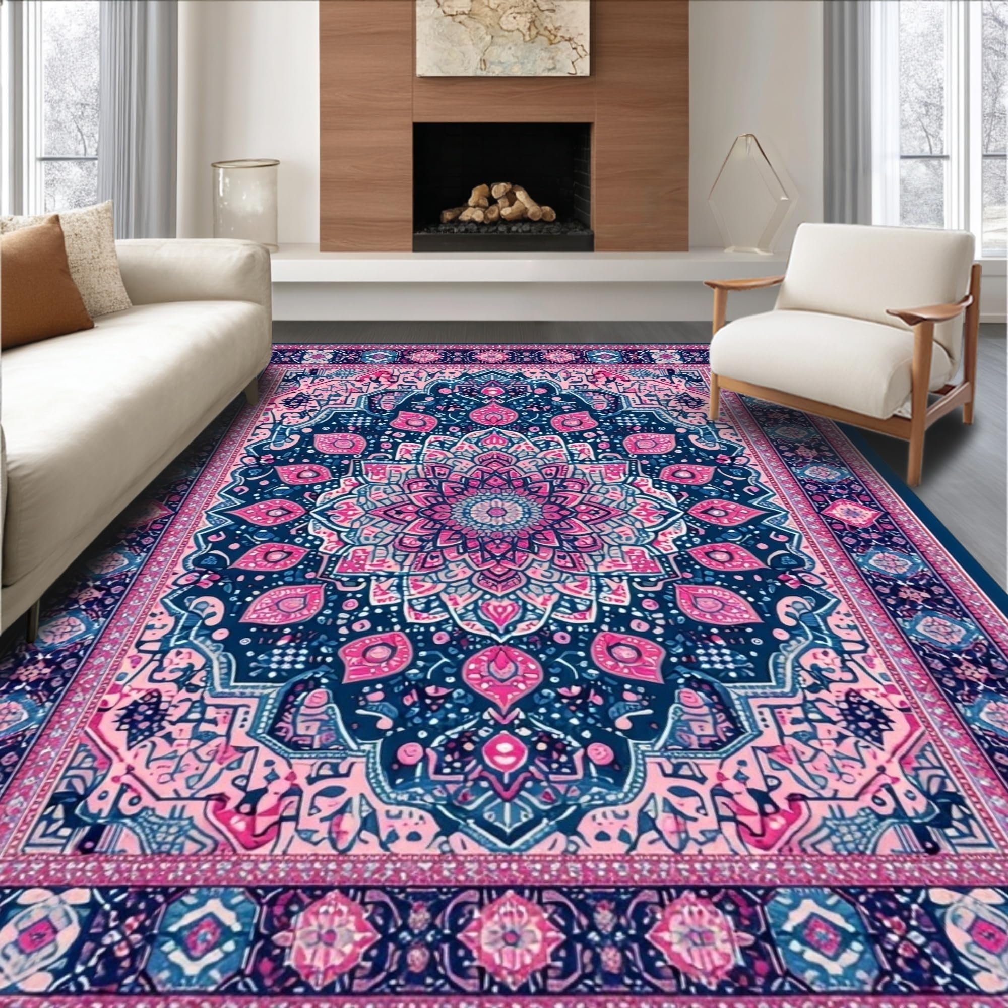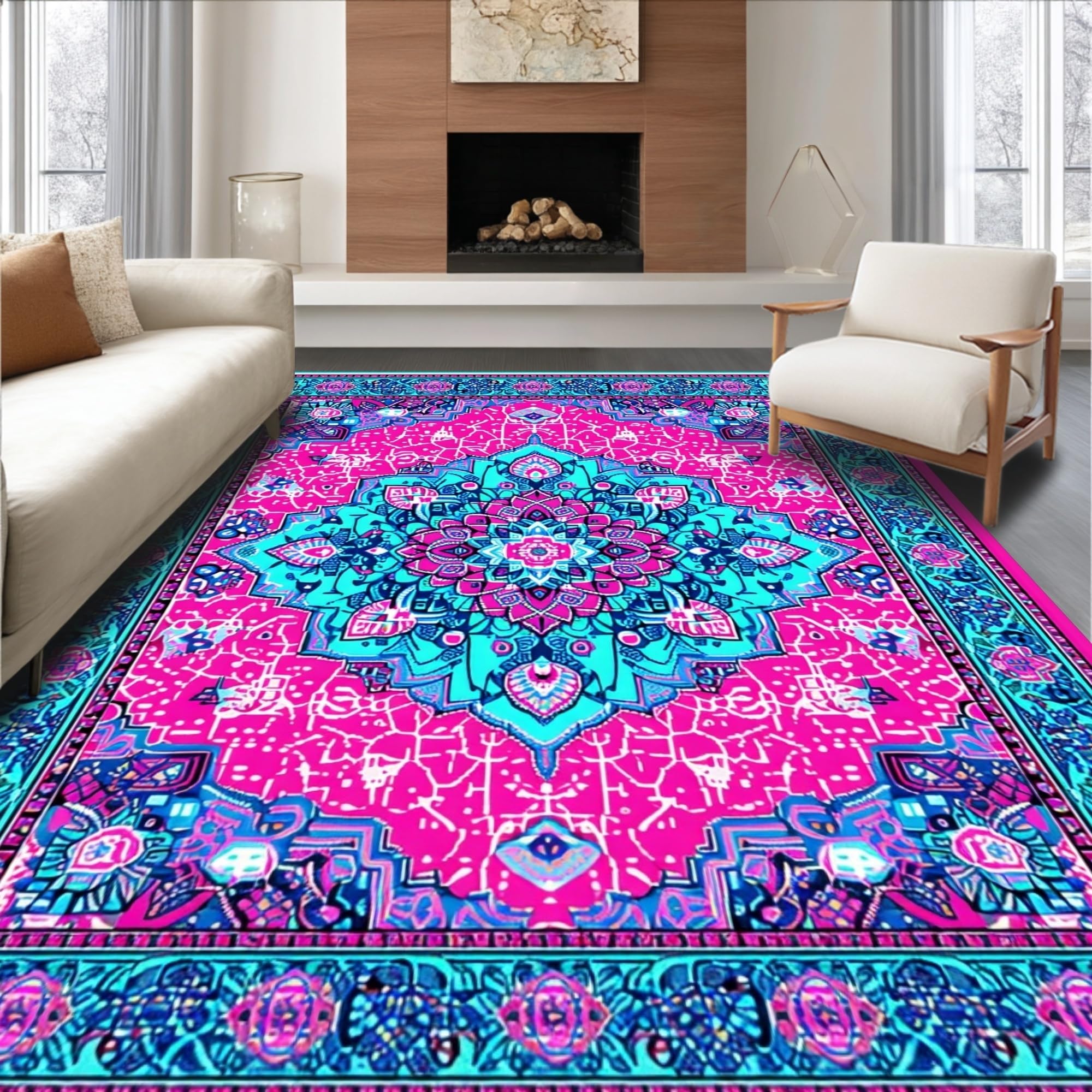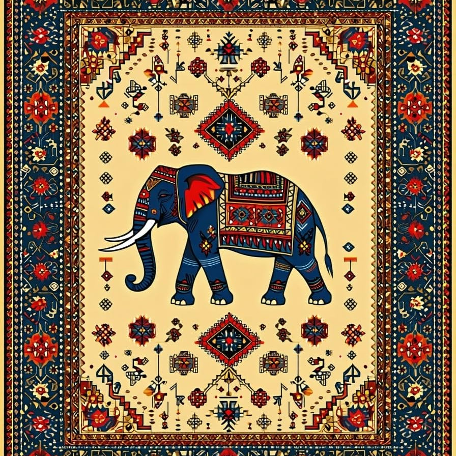 Ethnic Symbolic Patterned Floor Covering(Blue)