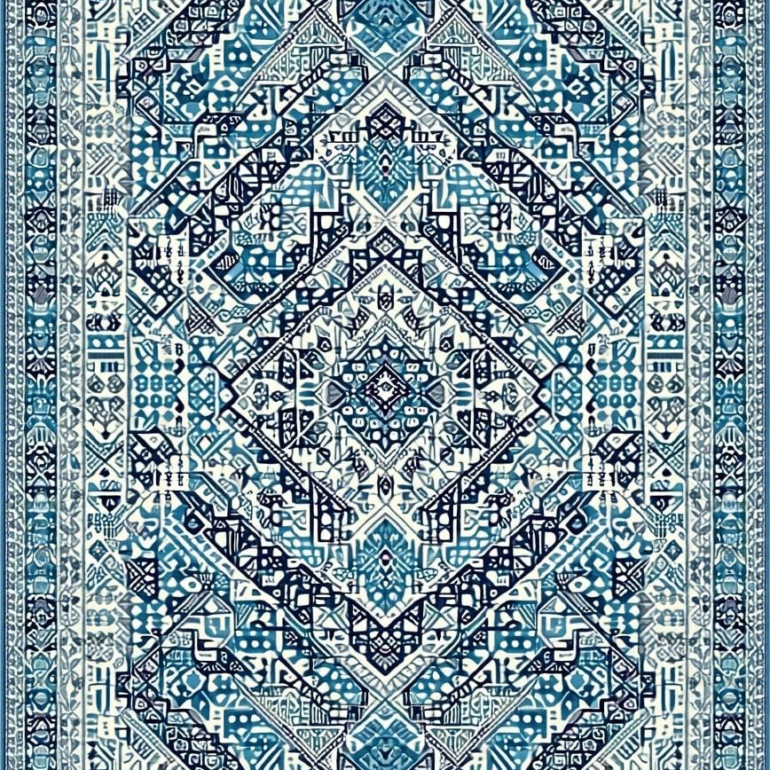 Trendy Geometric Trellis with Neutral Palette(Blue)