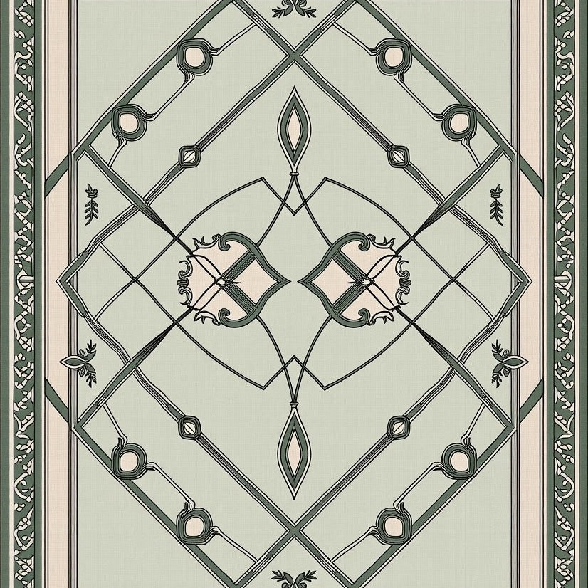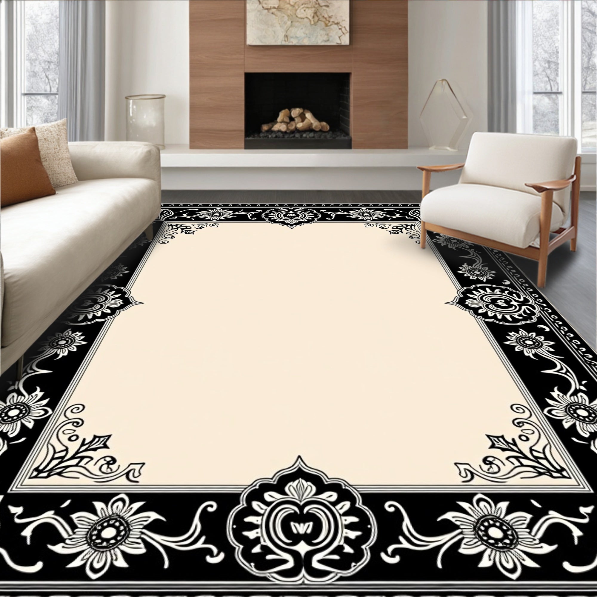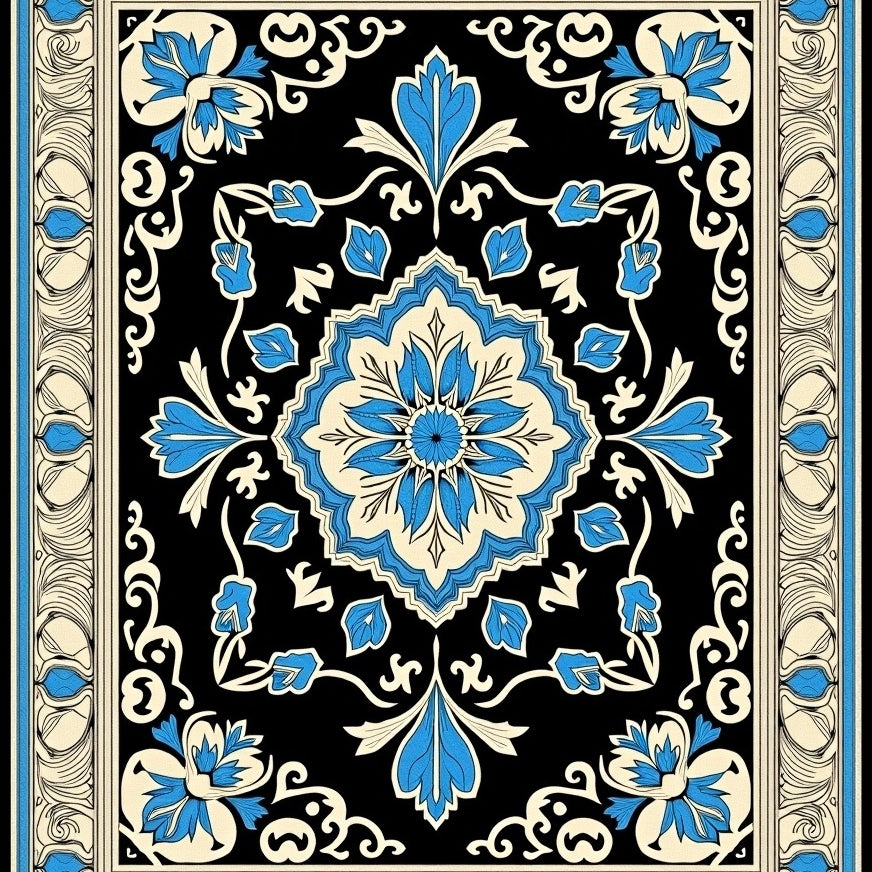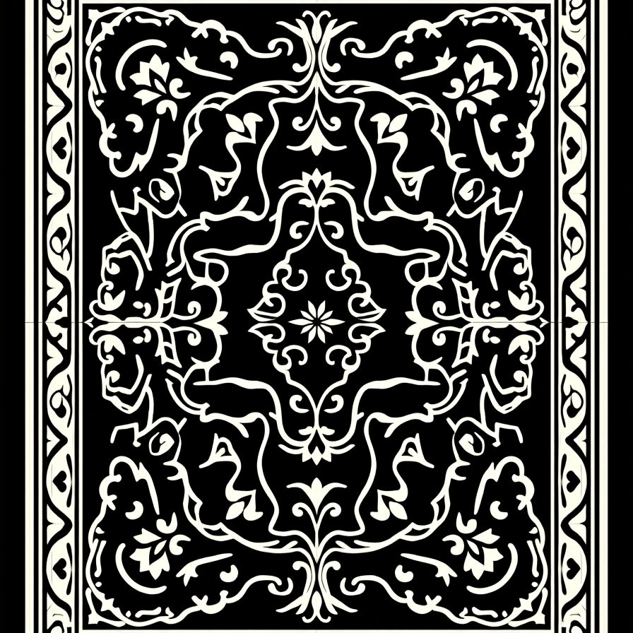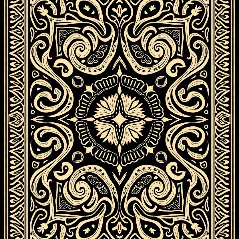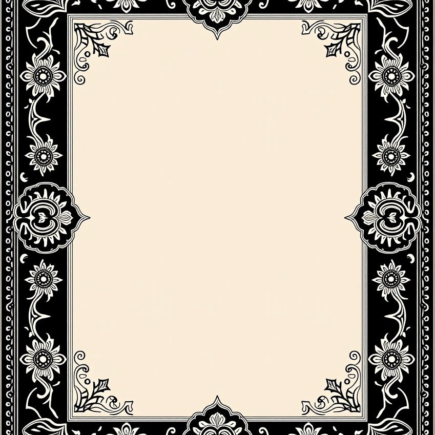 Heritage Fleur Border Design with Distressed Floral Arabesque Centerpiece(Black)