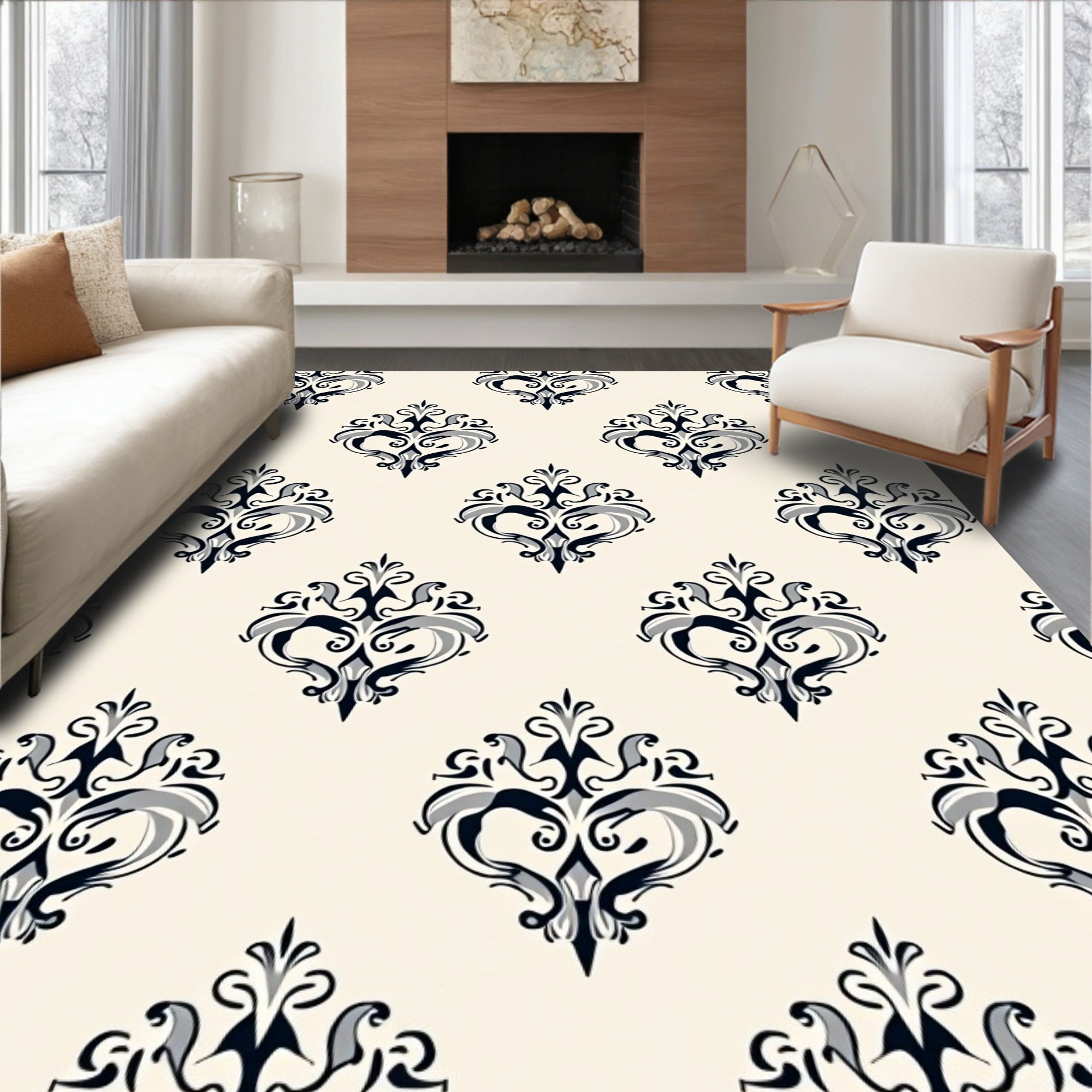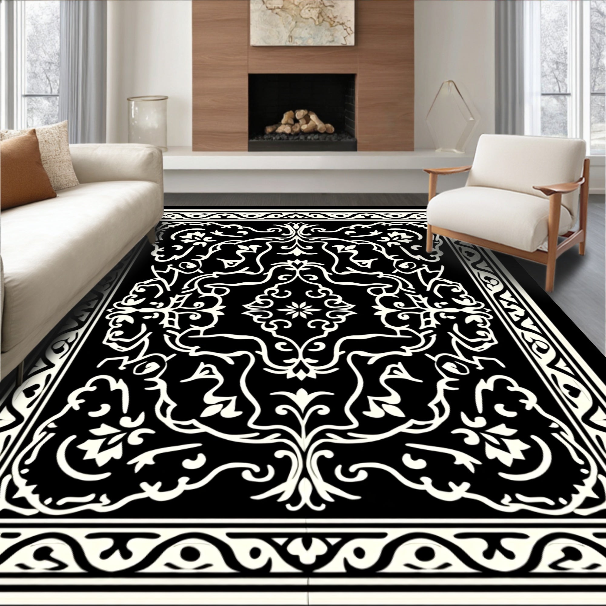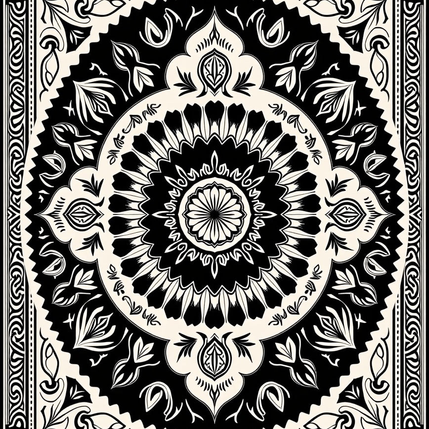 Intricate Medallion Damask Traditional Ornamental Design(Black)