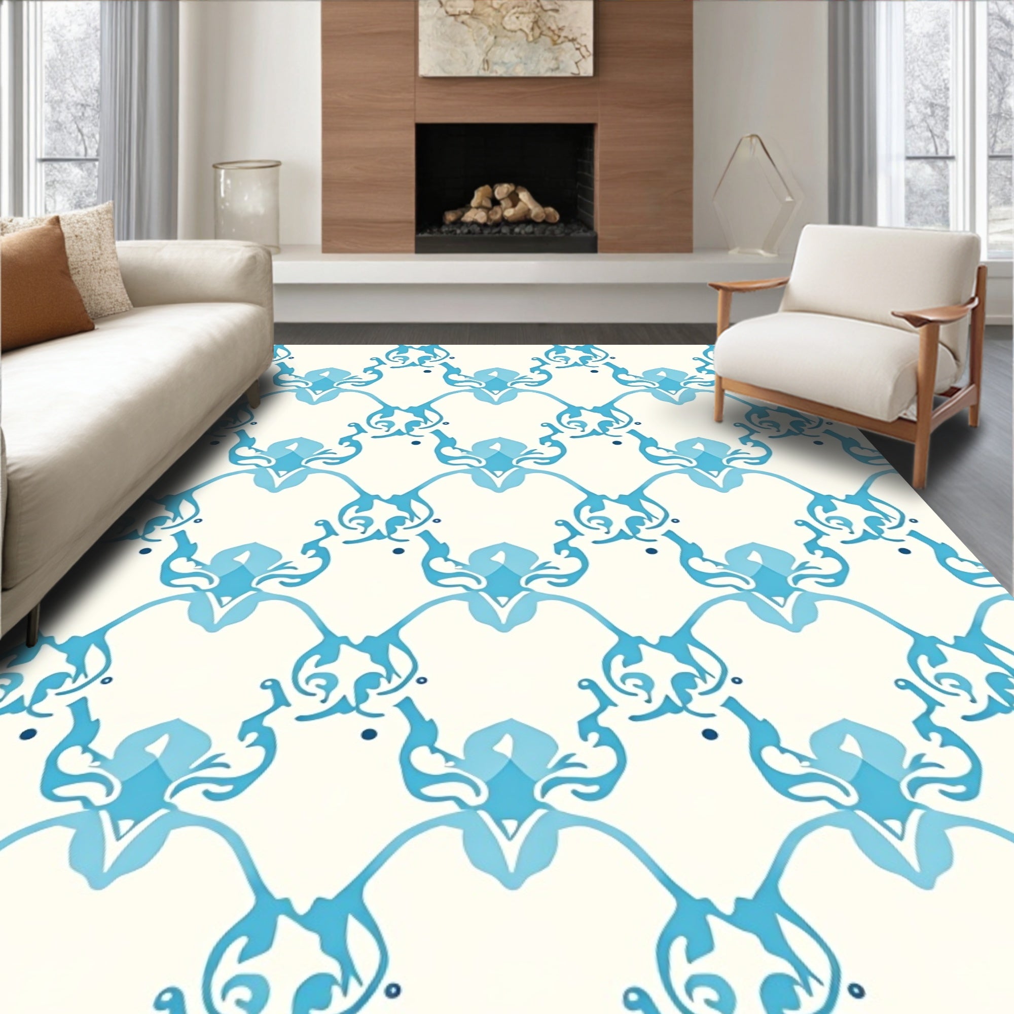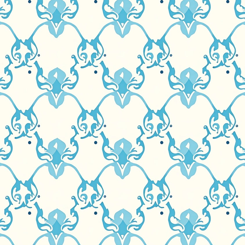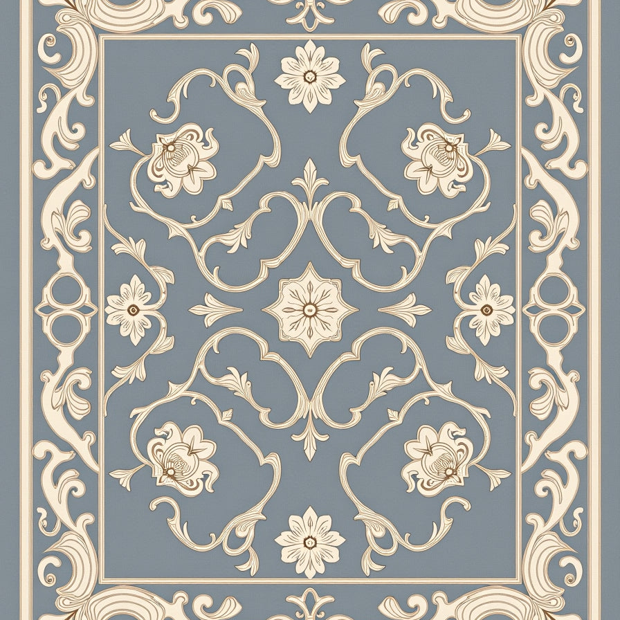 Vintage Damask Scrollwork with Elegant Motifs(Blue)