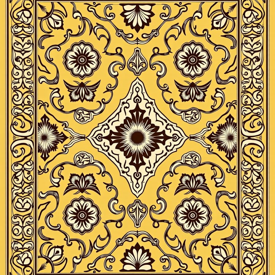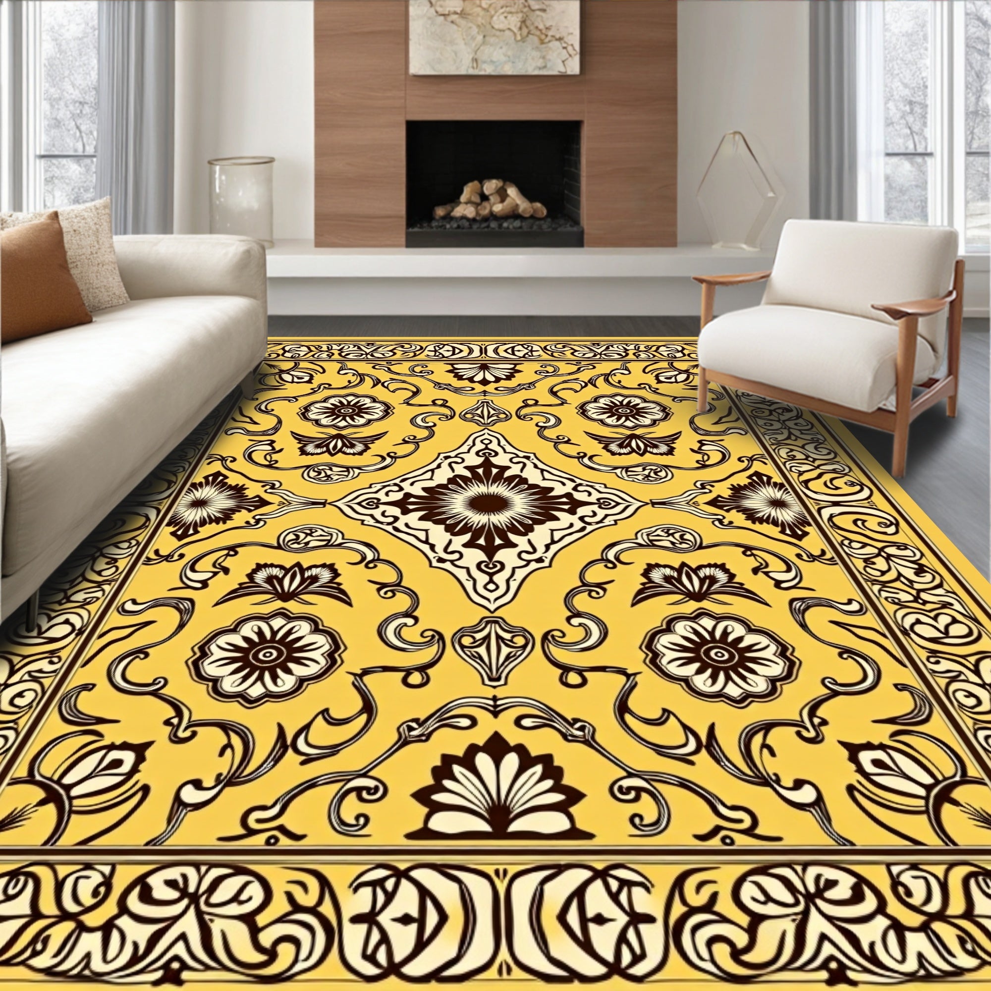Elegant Damask Scroll Distressed Ancient Arabesque Decorative(Yellow)