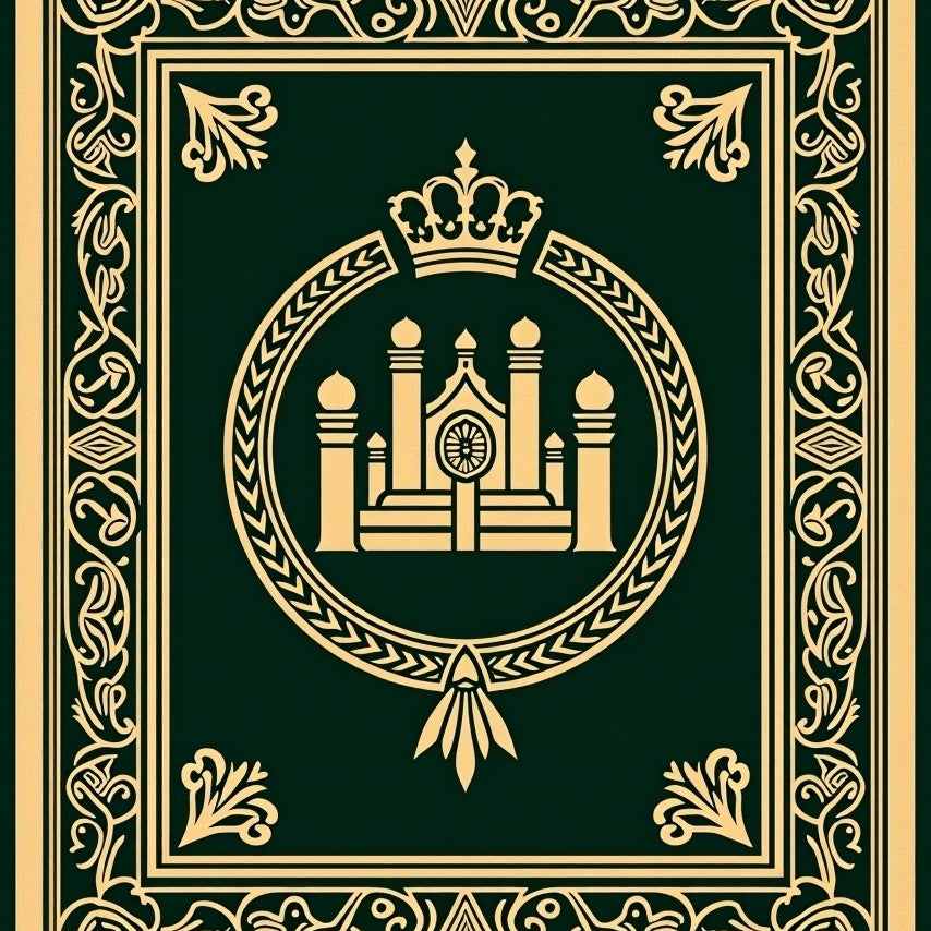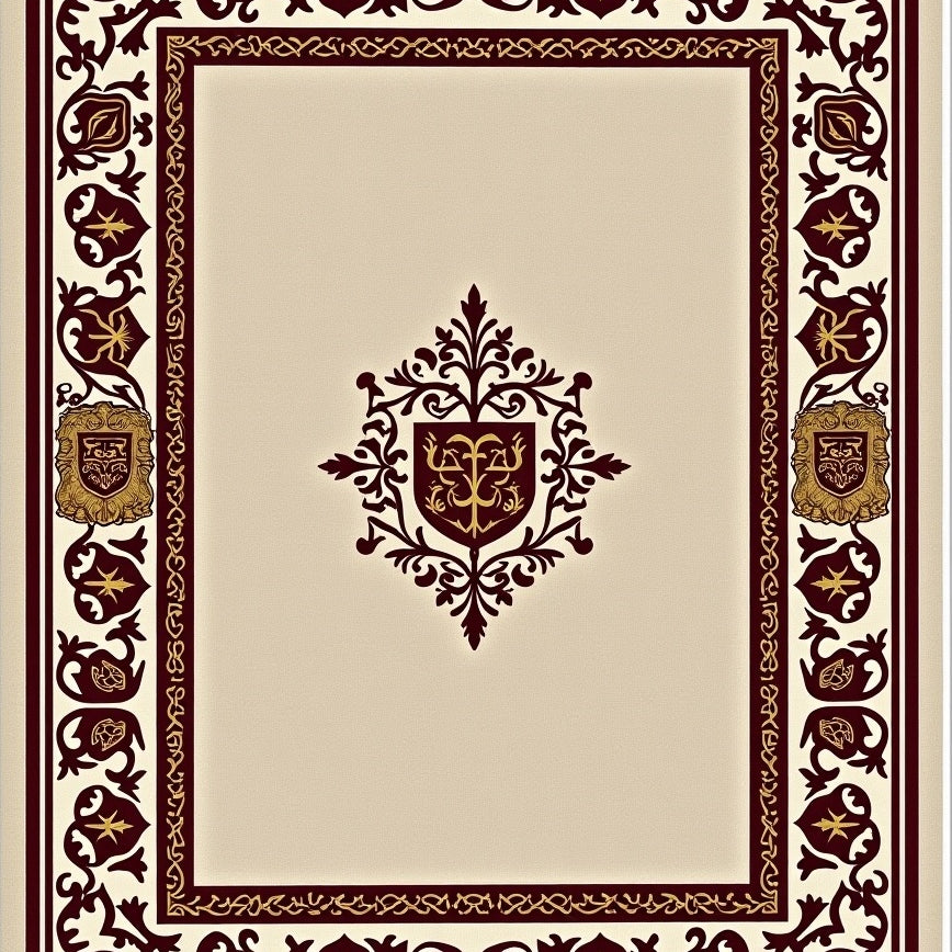 Medieval Tapestry Inspired Heraldic Crest with Flourish(Beige)