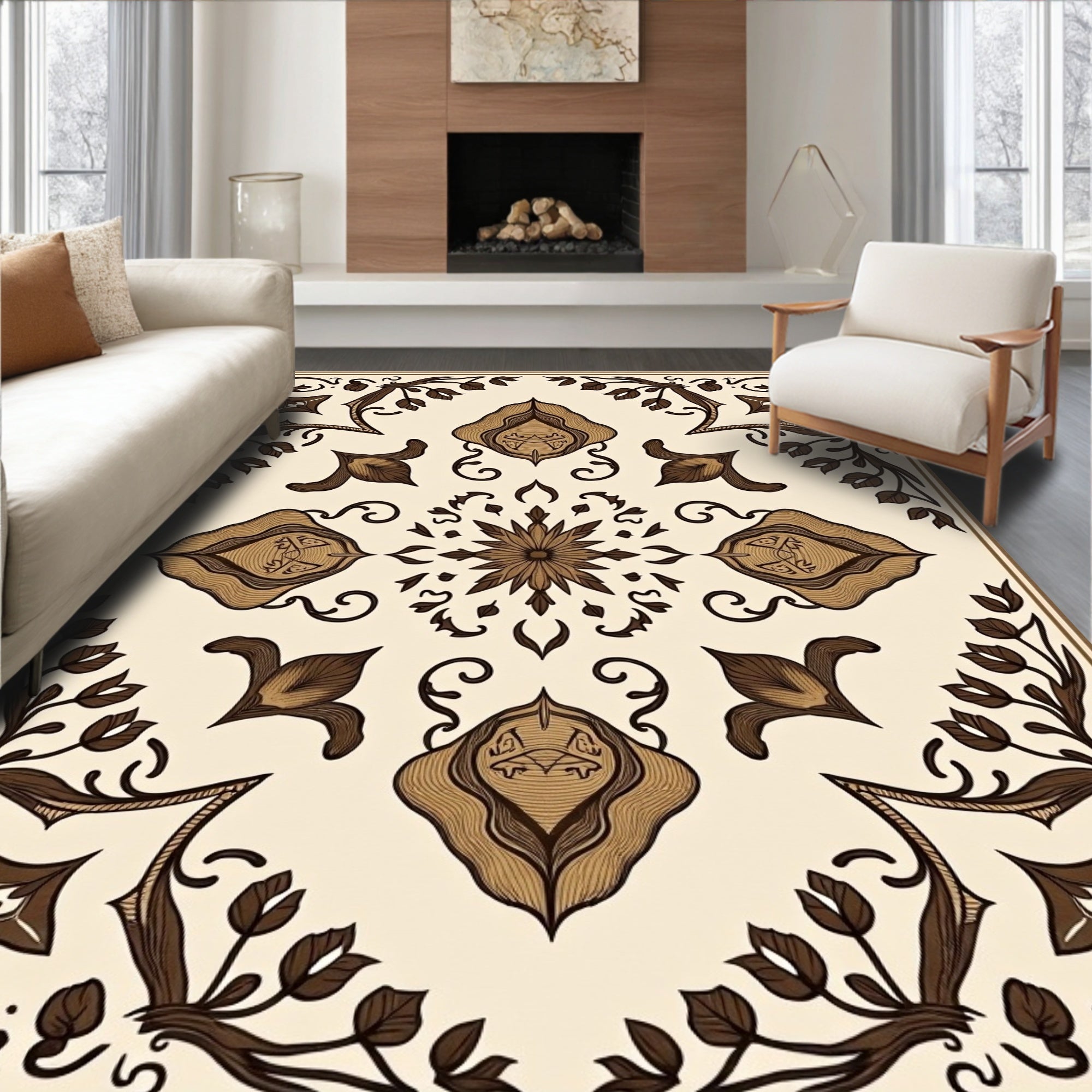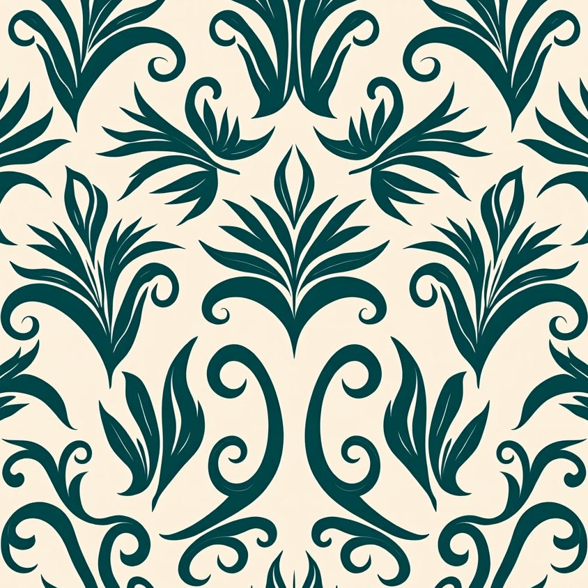 Traditional Damask Scrollwork Symmetrical Artistic Heritage (Ivory)