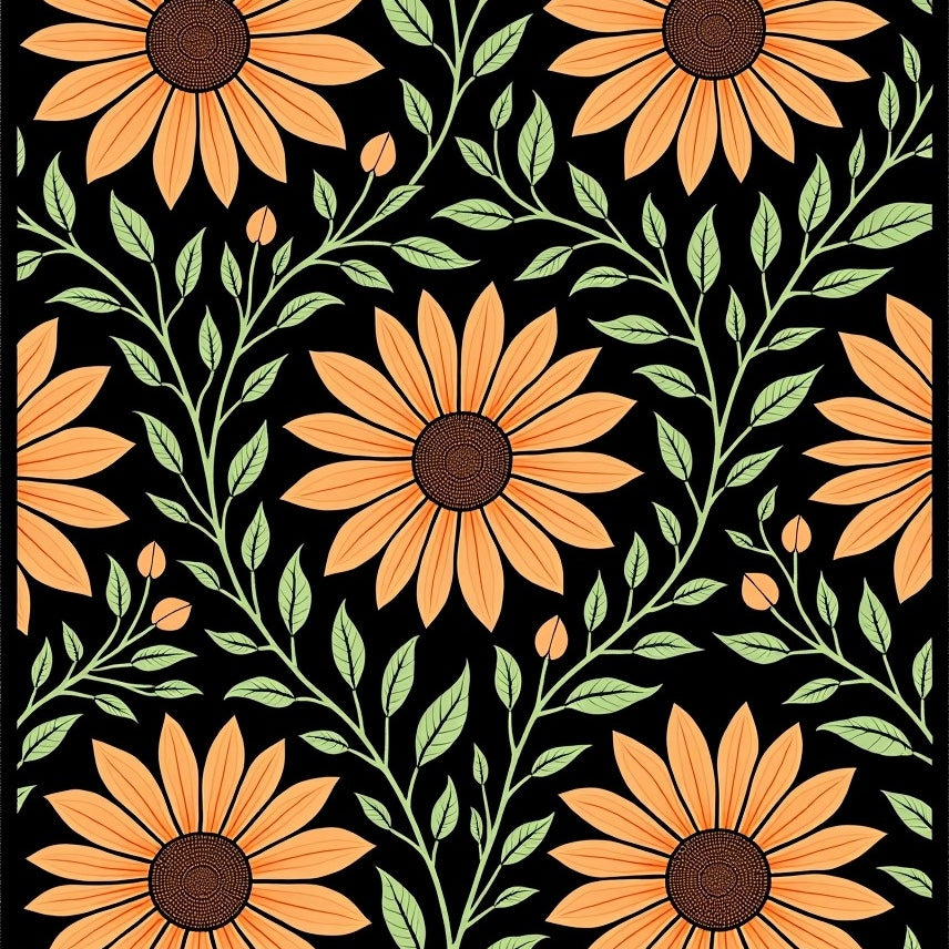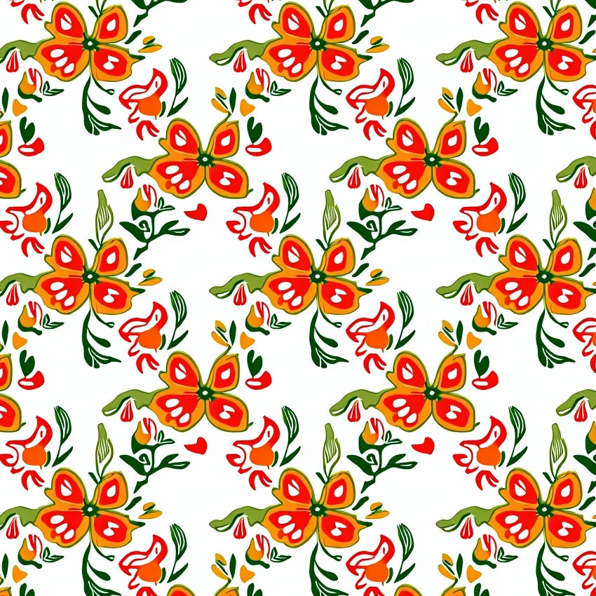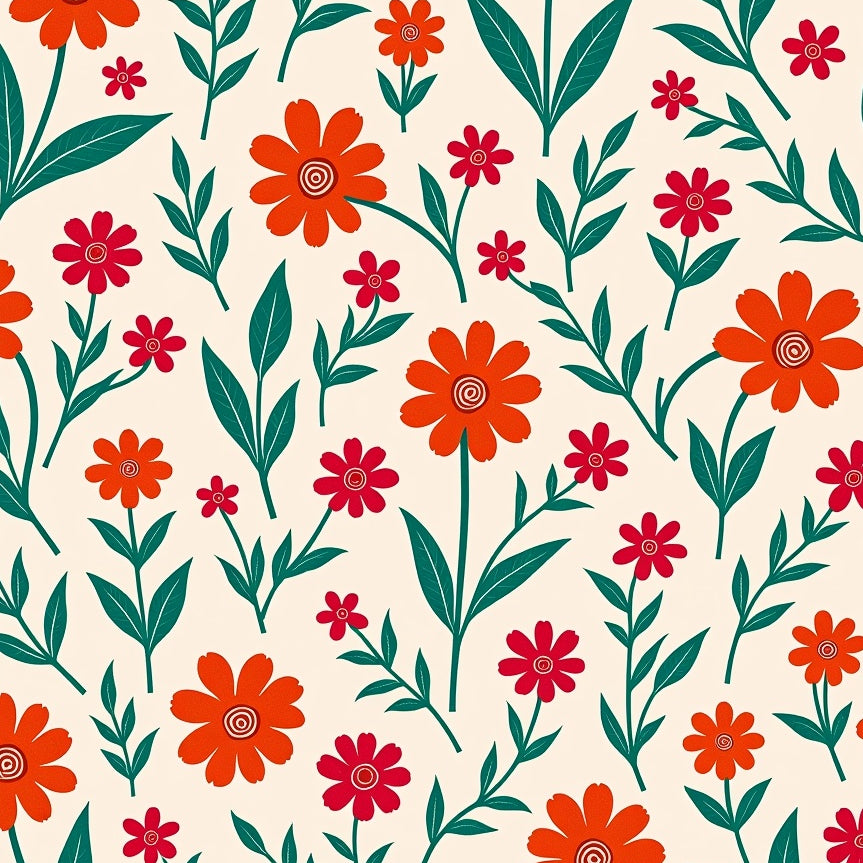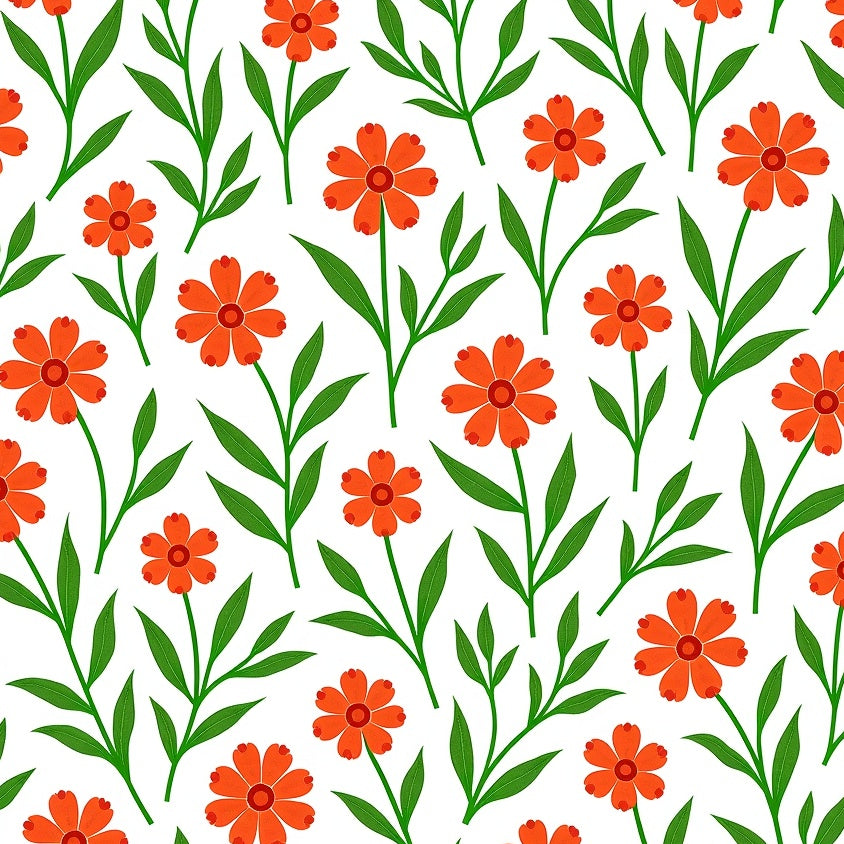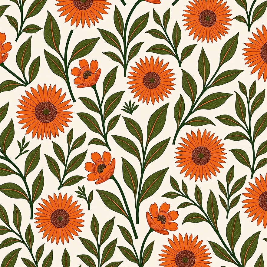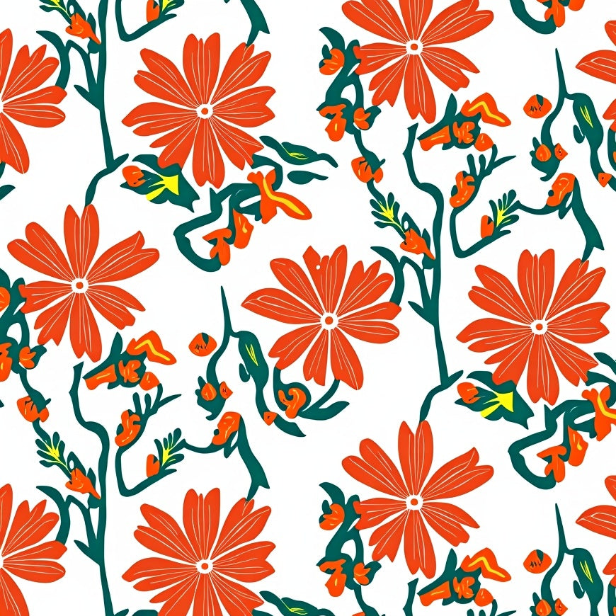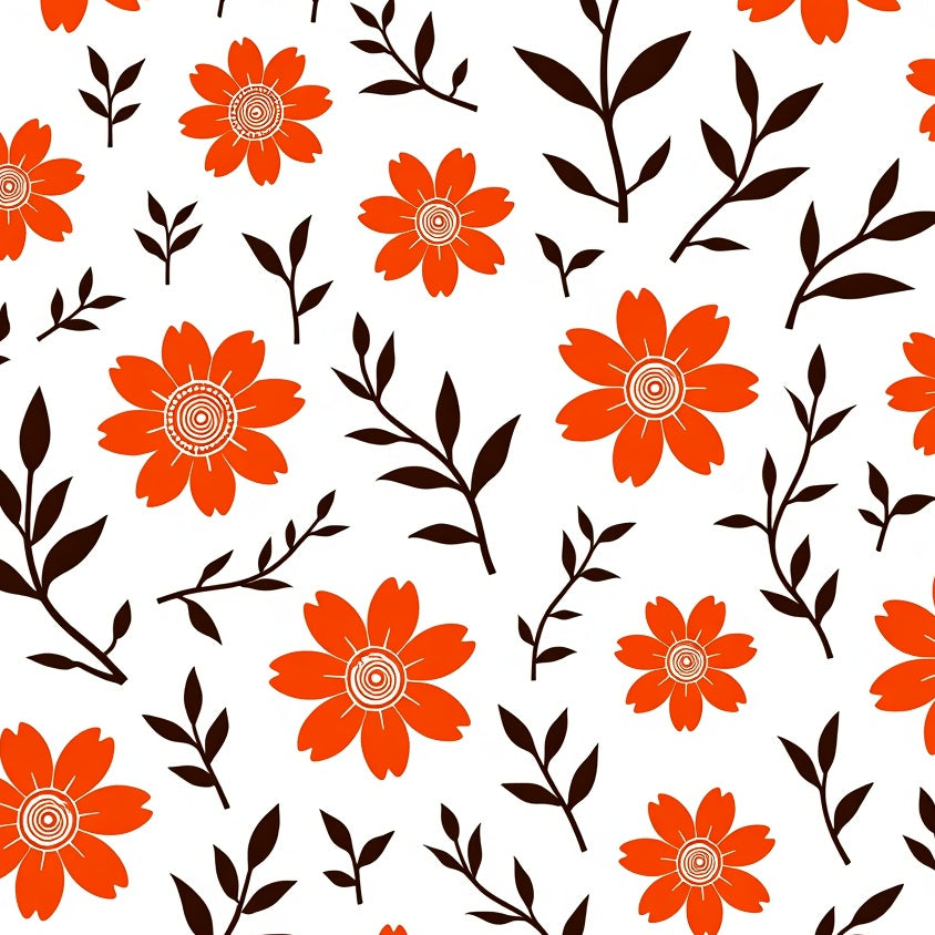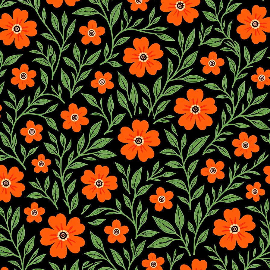 Meadow Wildflower Motif with Intertwined Vine Accents and Boho Petal Details (Orange)