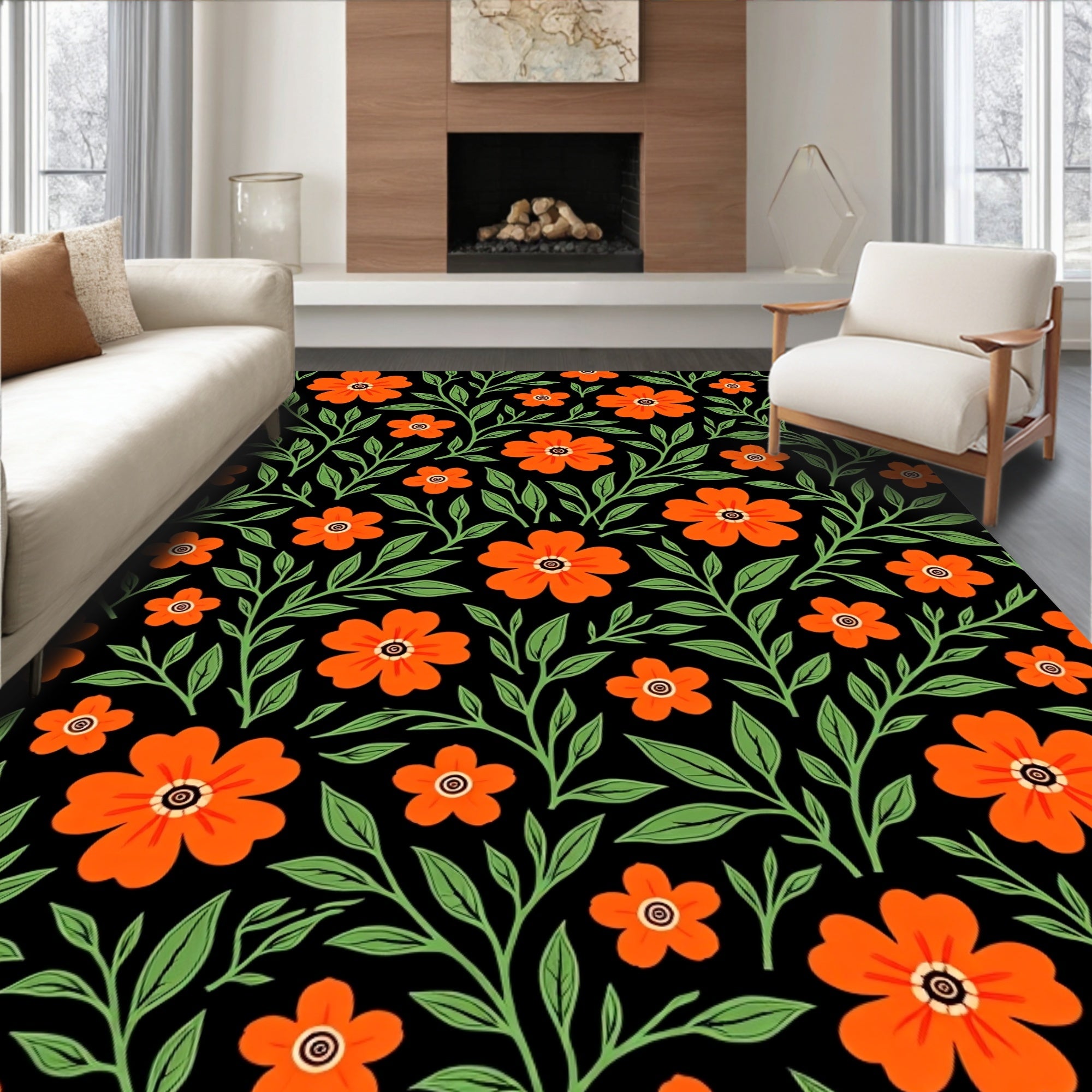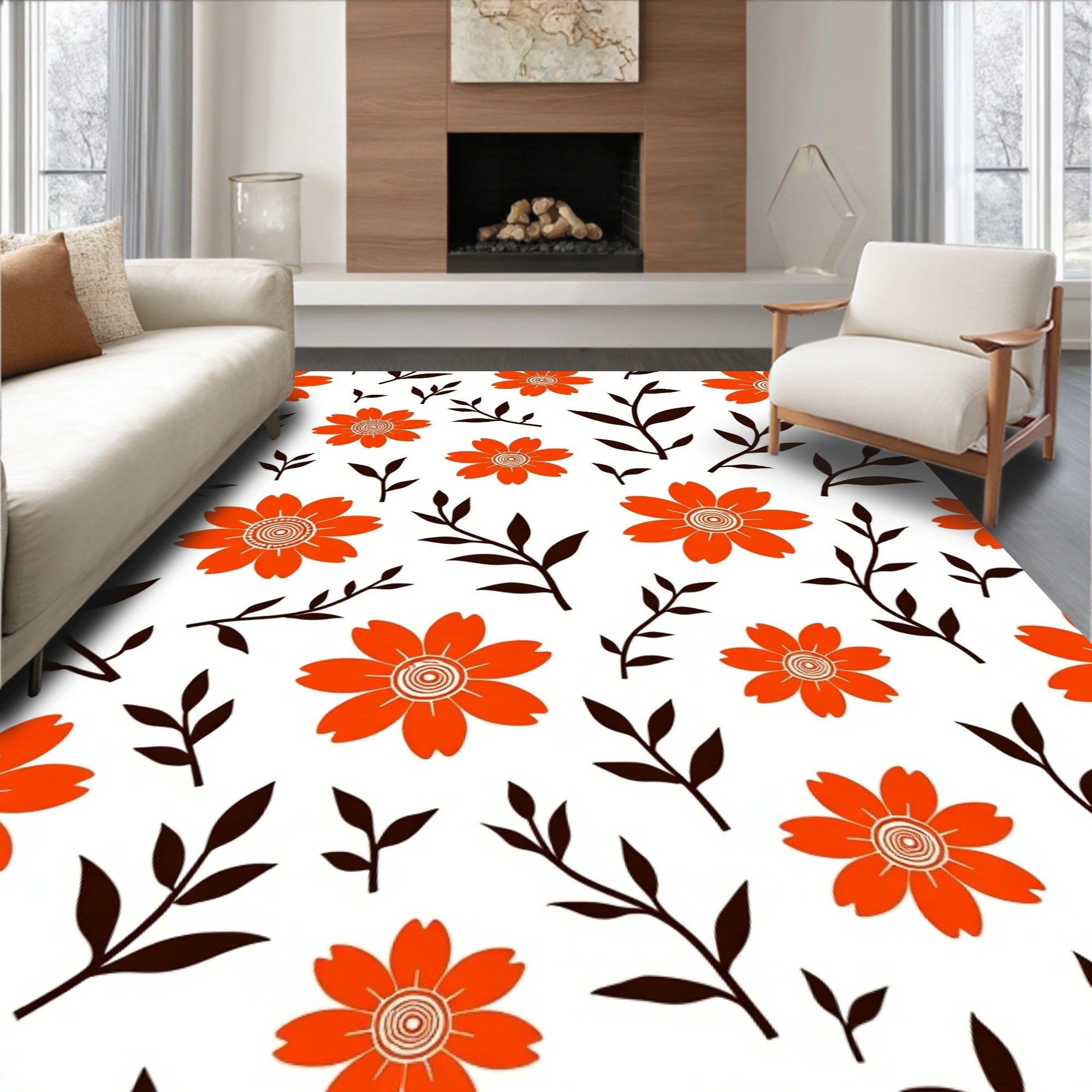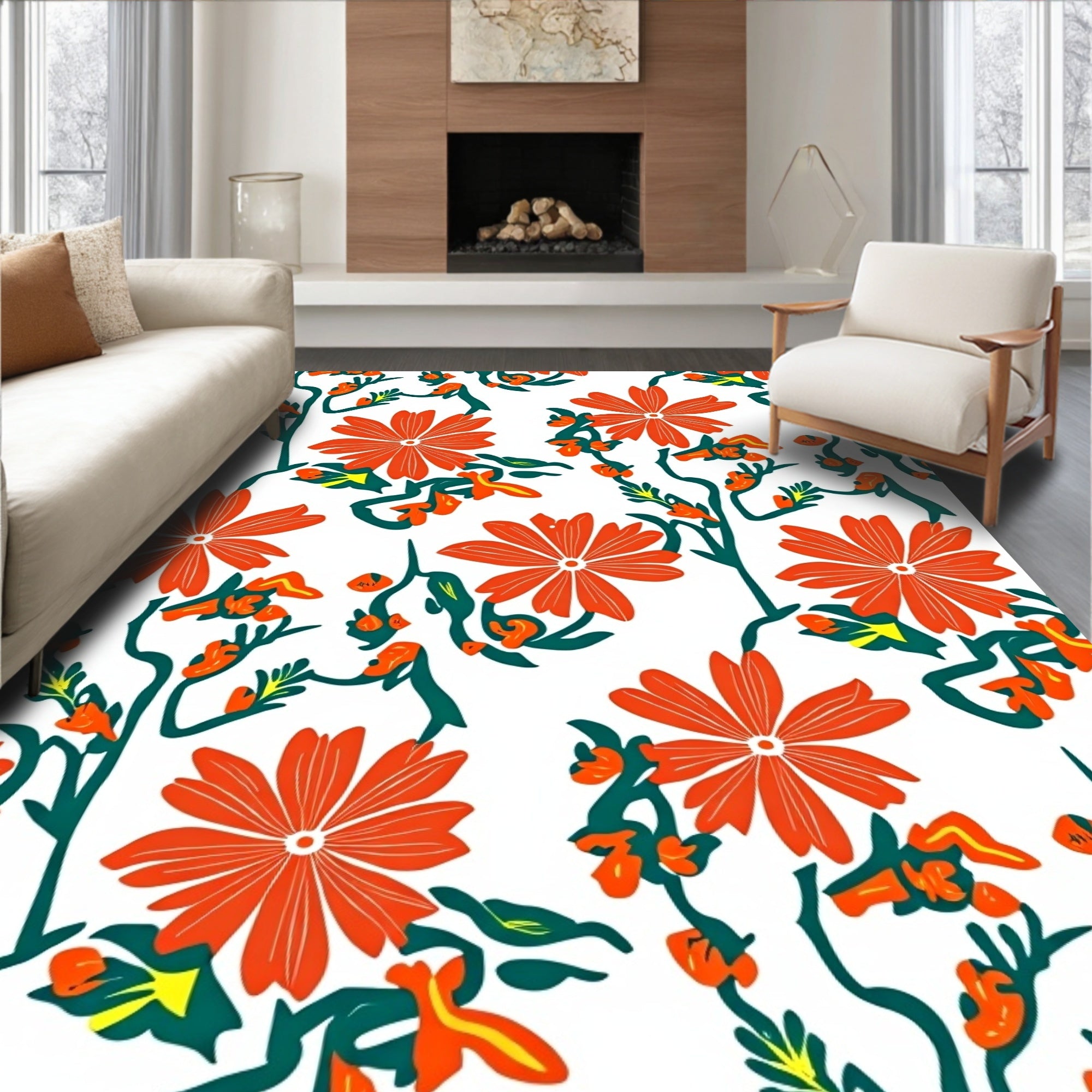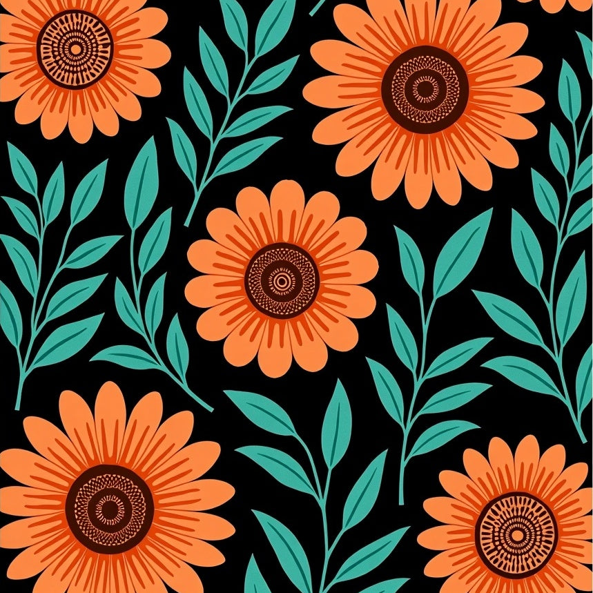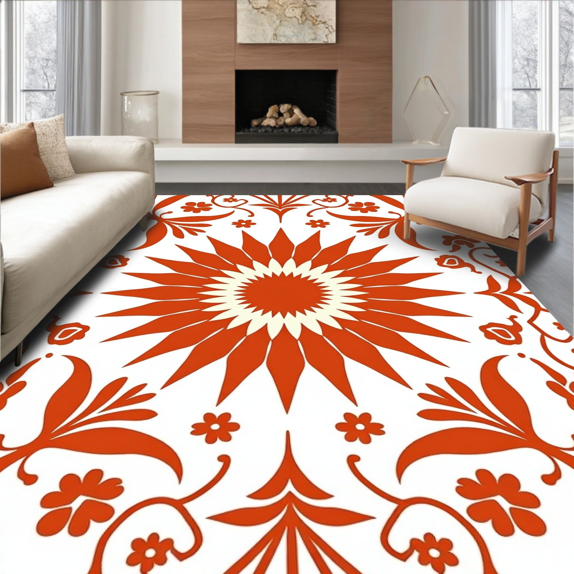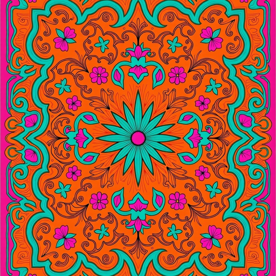 Sunset Bloom Botanical Medallion Design Contemporary (Orange)