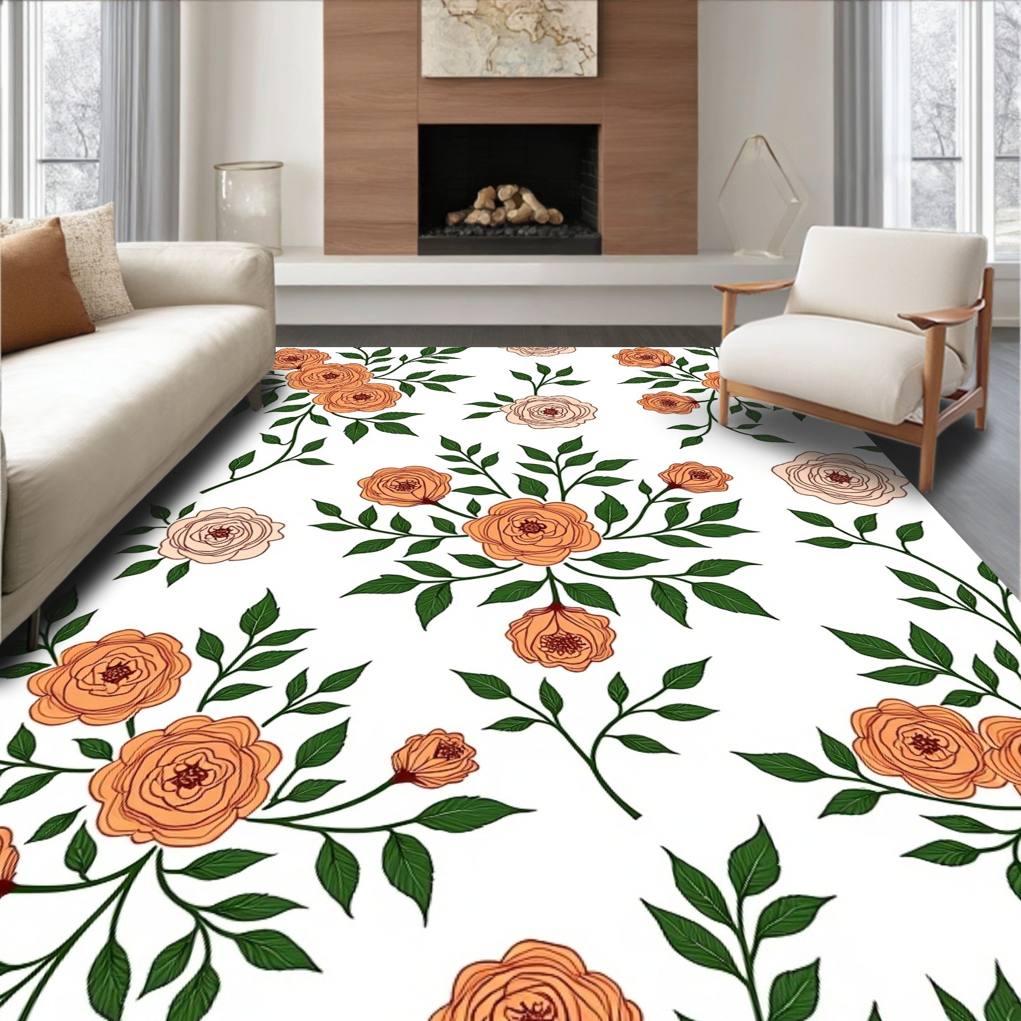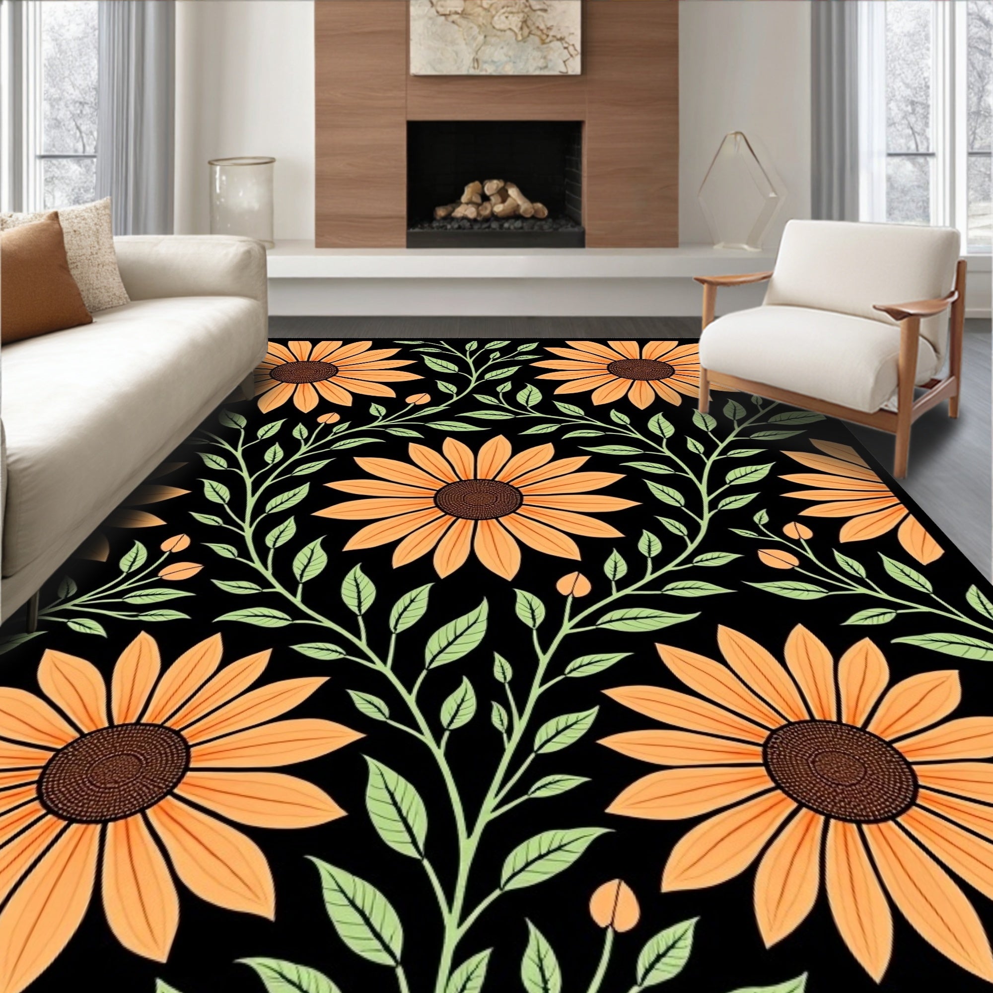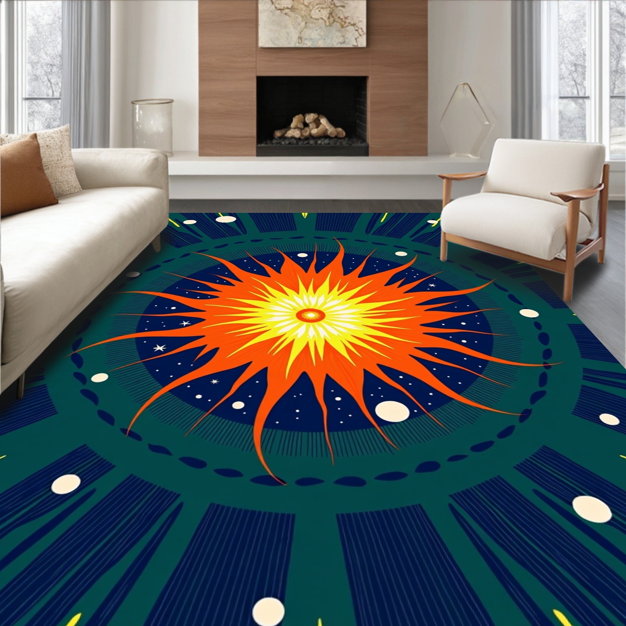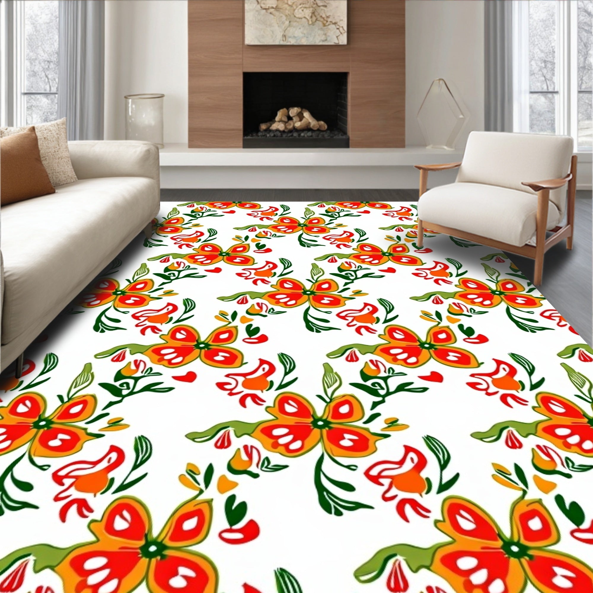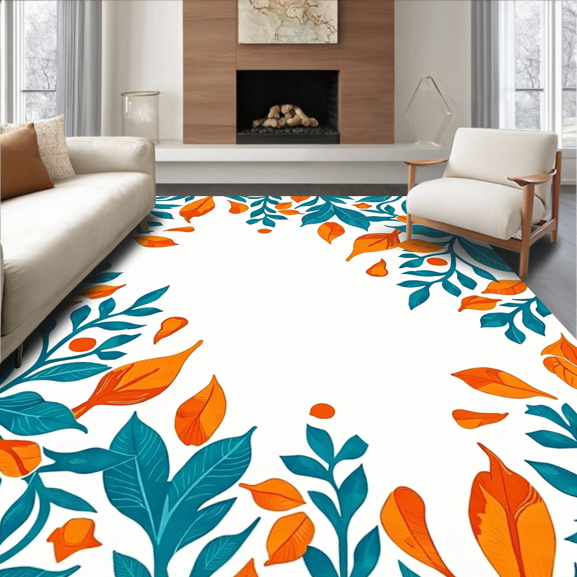 Sunset Bloom Botanical Medallion Design Contemporary (Orange)