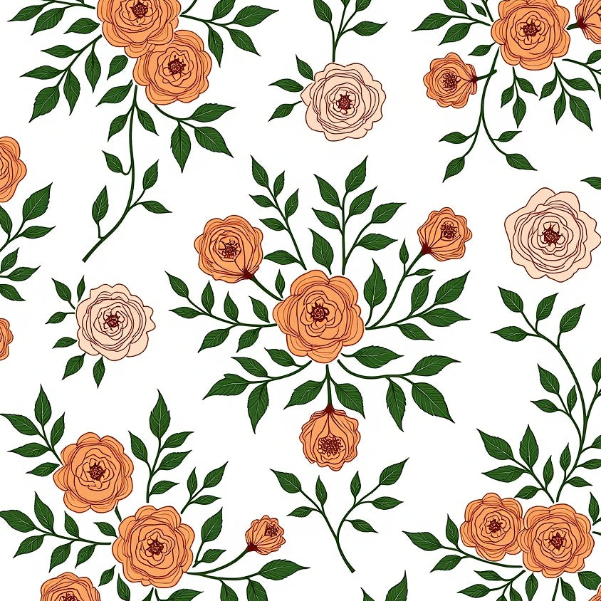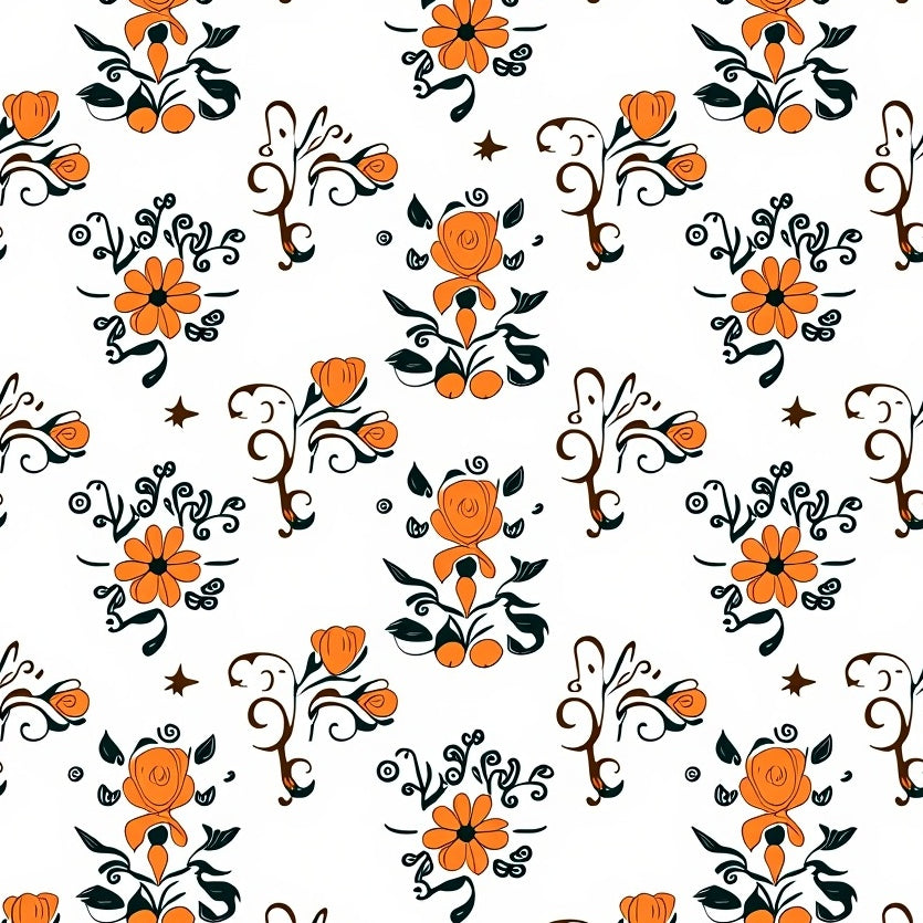 Stylized Bloom Cluster With Curvy Vines And Layered Abstract Leaves (Orange)
