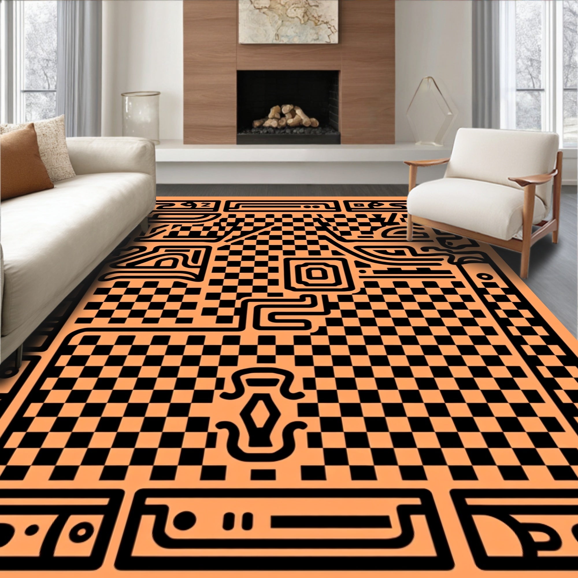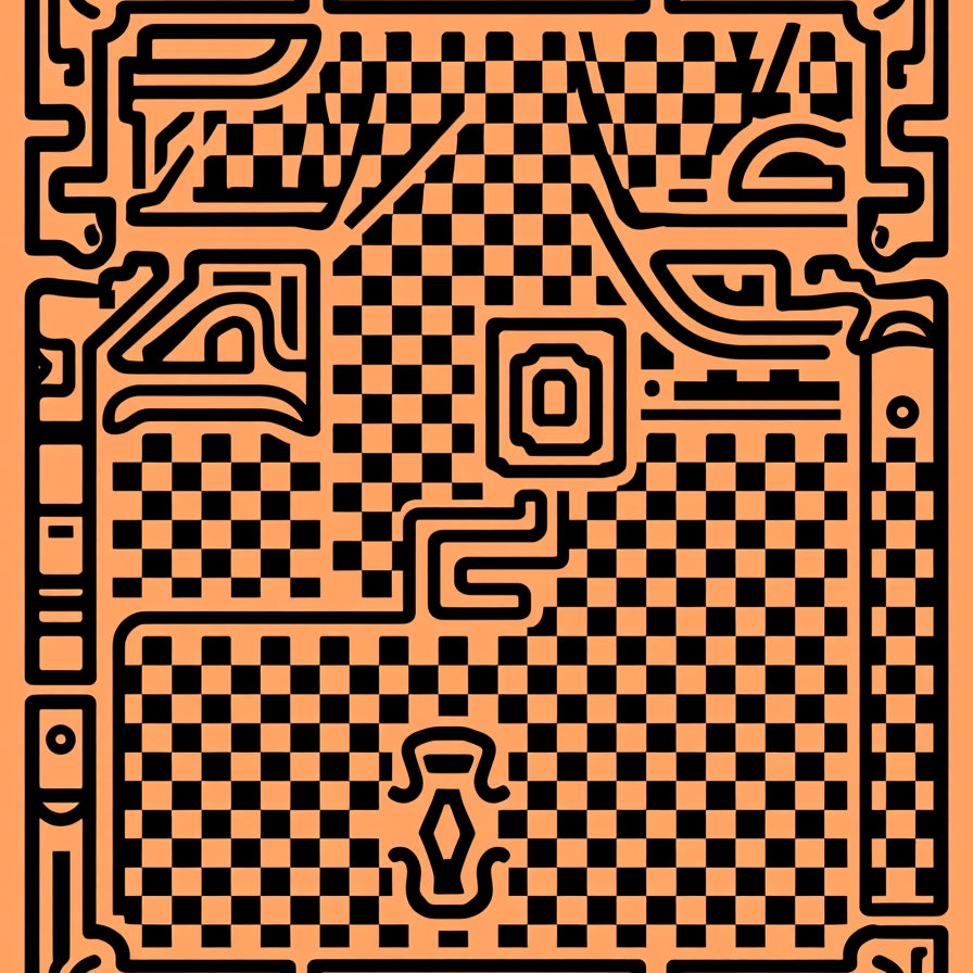 Interlocking Checkerboard Maze with Abstract Border Motifs(Orange)