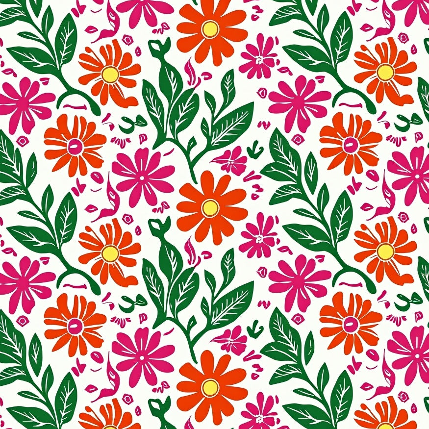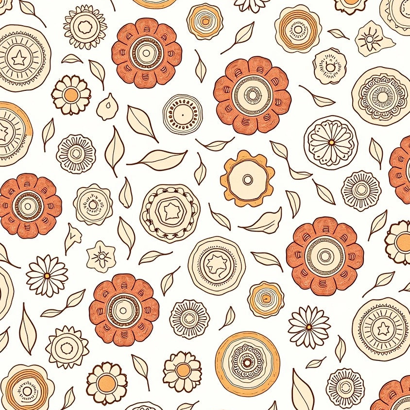 Colorful Boho Chic Arrangement Featuring Stylized Flowers And Leaf Shapes (Orange)