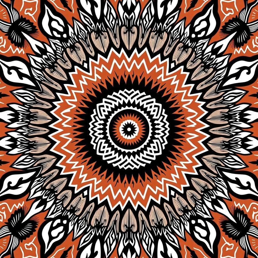 Abstract Sunburst Medallion with Boho Botanical Flourishes (Orange)