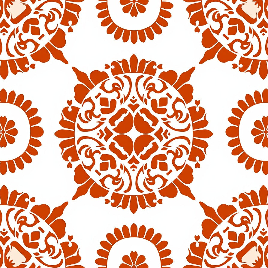 Botanical Medallion Motif with Interlocking Vine and Blossom Accents (Orange)