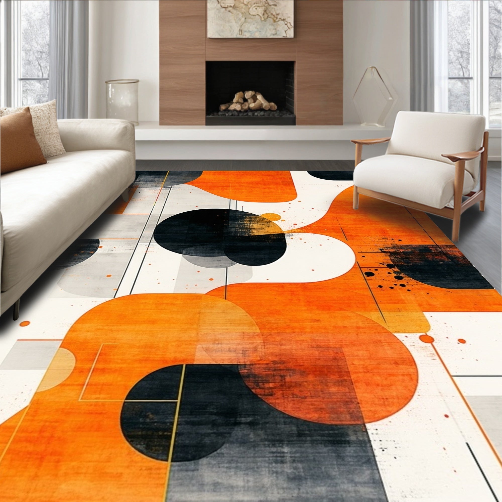 Ember Abstract Geometric Shape Throw Indoor Floor(Orange)