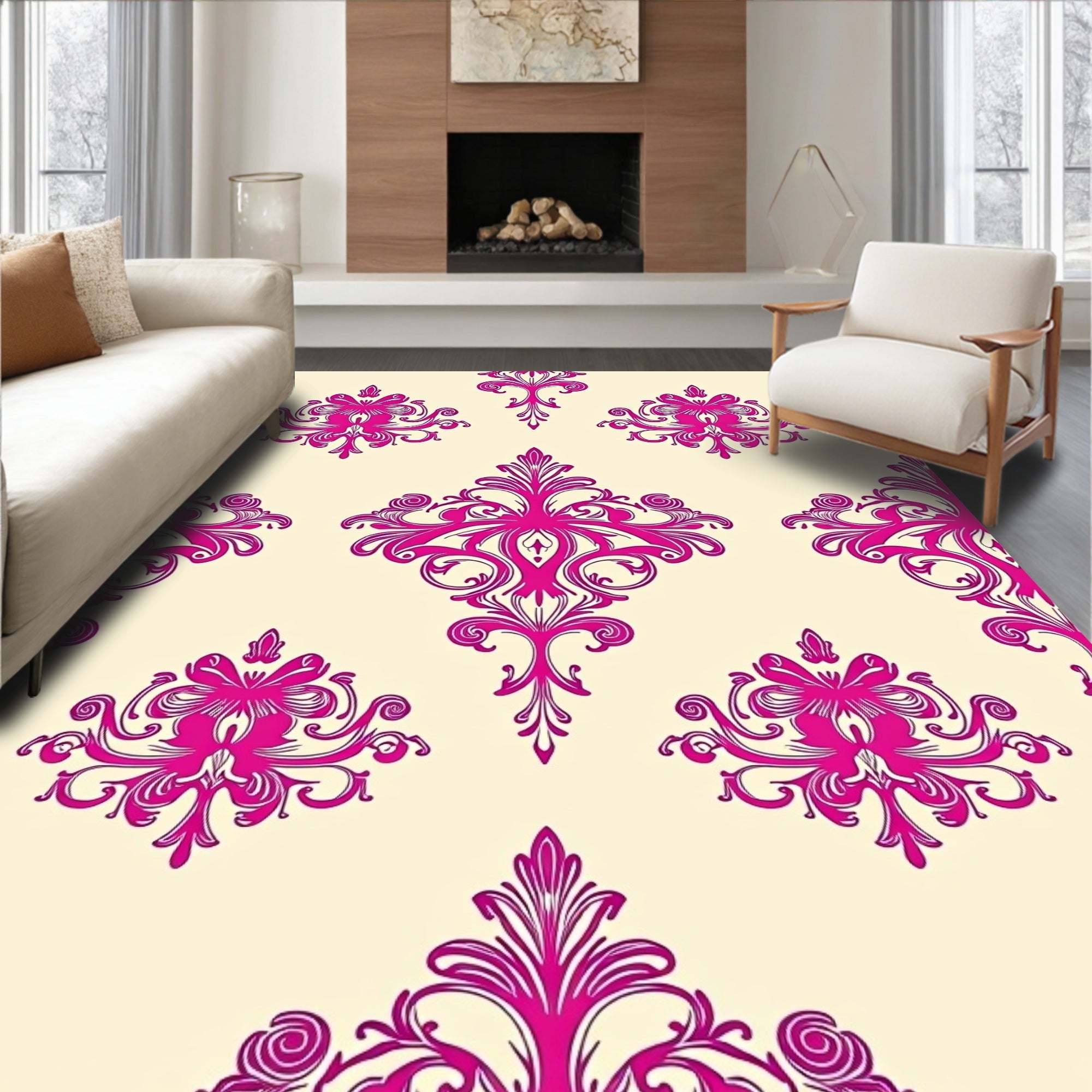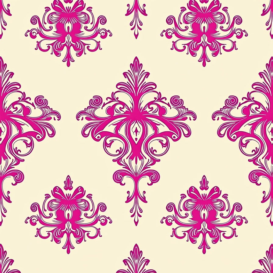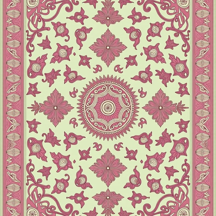 Vintage Damask Medallion with Ornate Flourishes and Scrollwork (Pink)