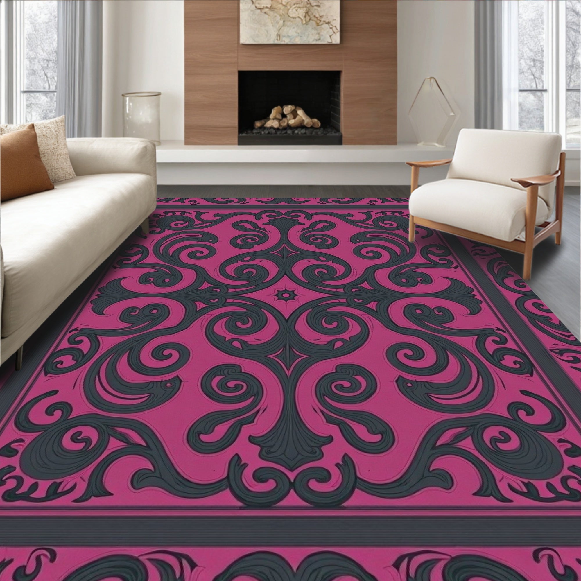 Luxurious Swirl Medallion Trellis Modern Contemporary Elegant (Pink)