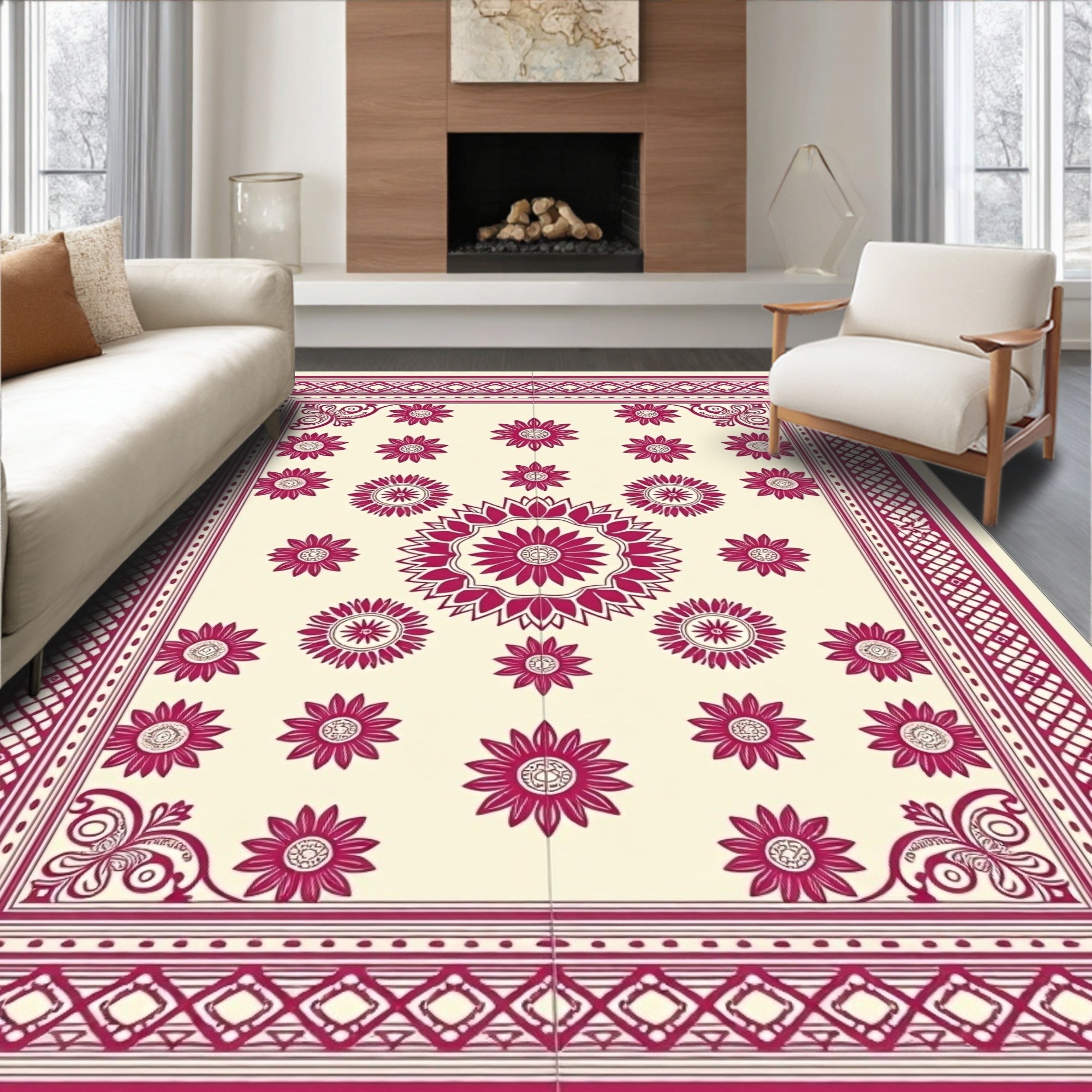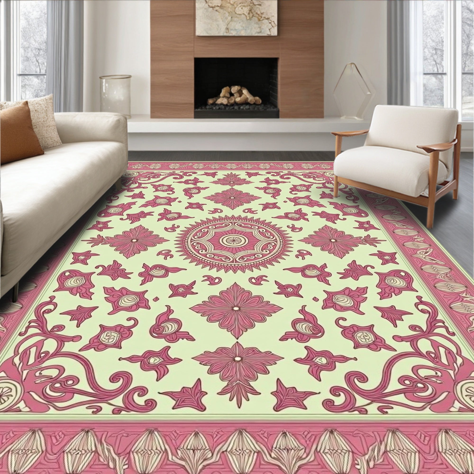 Medallion Paisley Ornate Boho Stylish Accent (Pink)