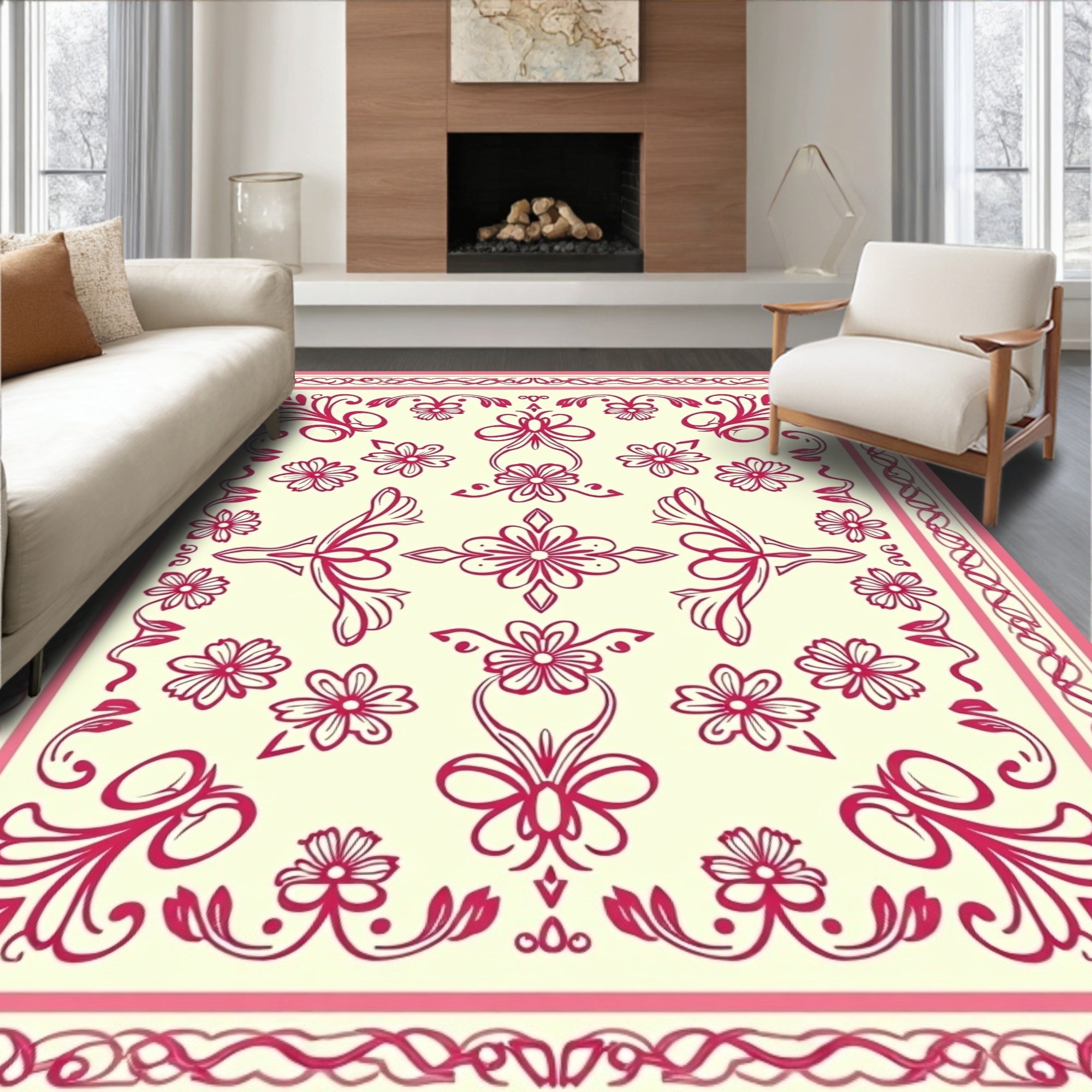 Scrollwork Botanical Ornate Symmetrical (Pink)