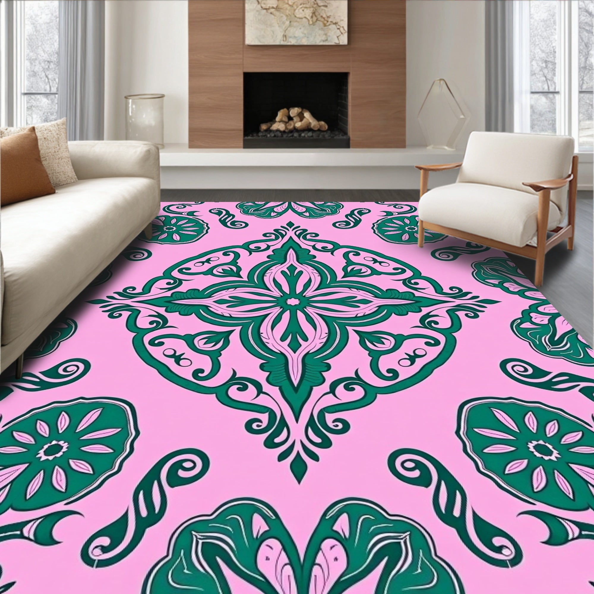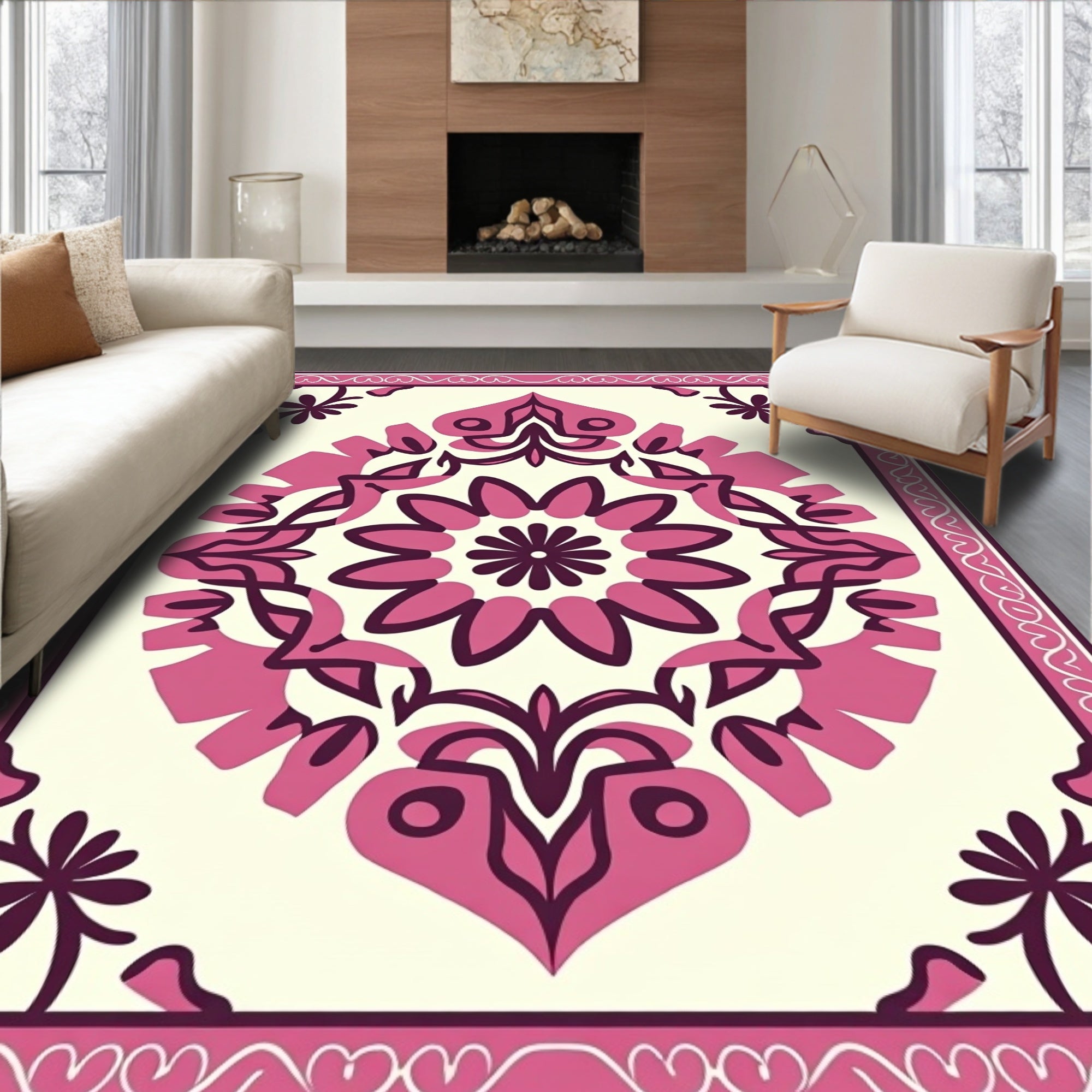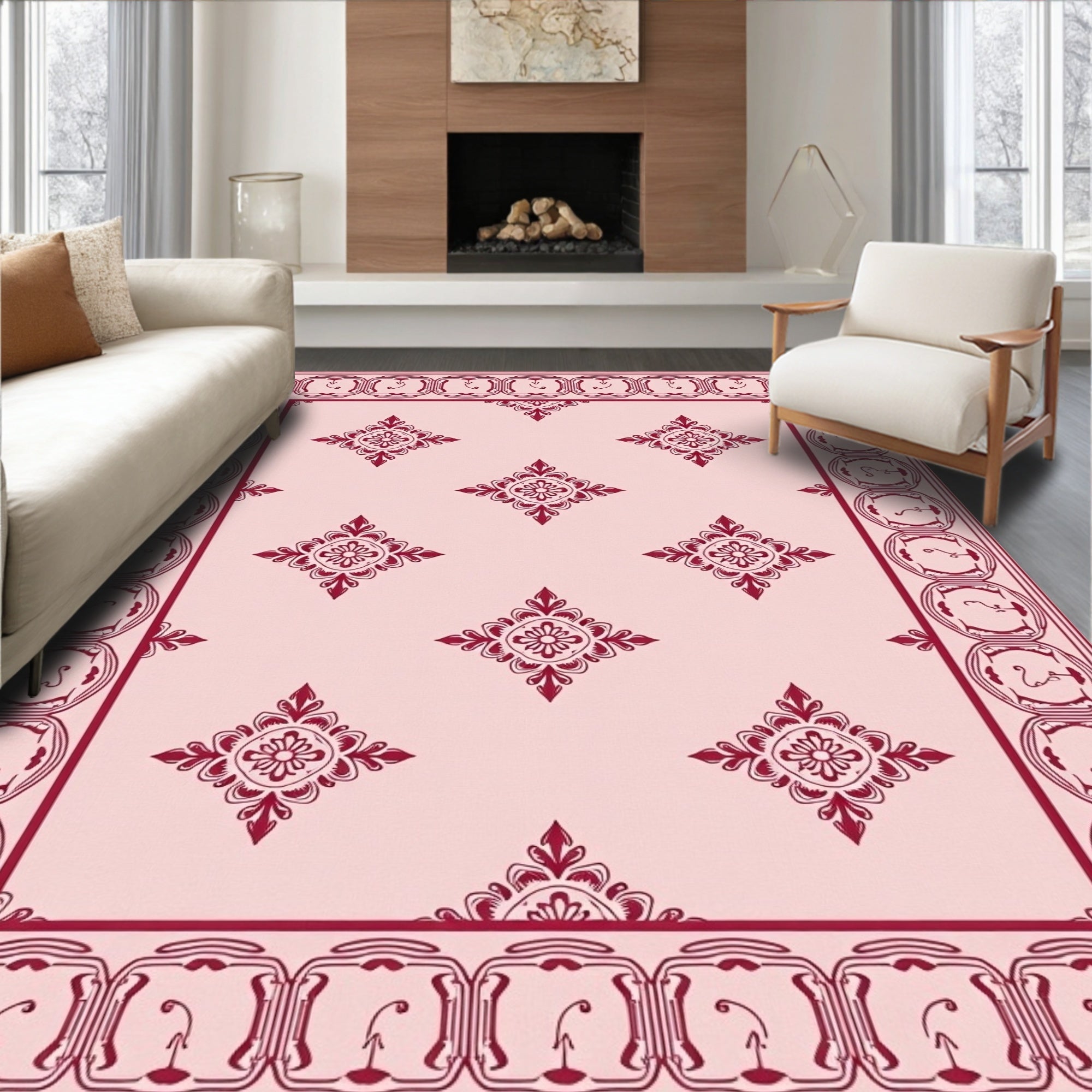 Vintage Distressed Medallion Heritage Artisan Handwoven Elegant (Pink)