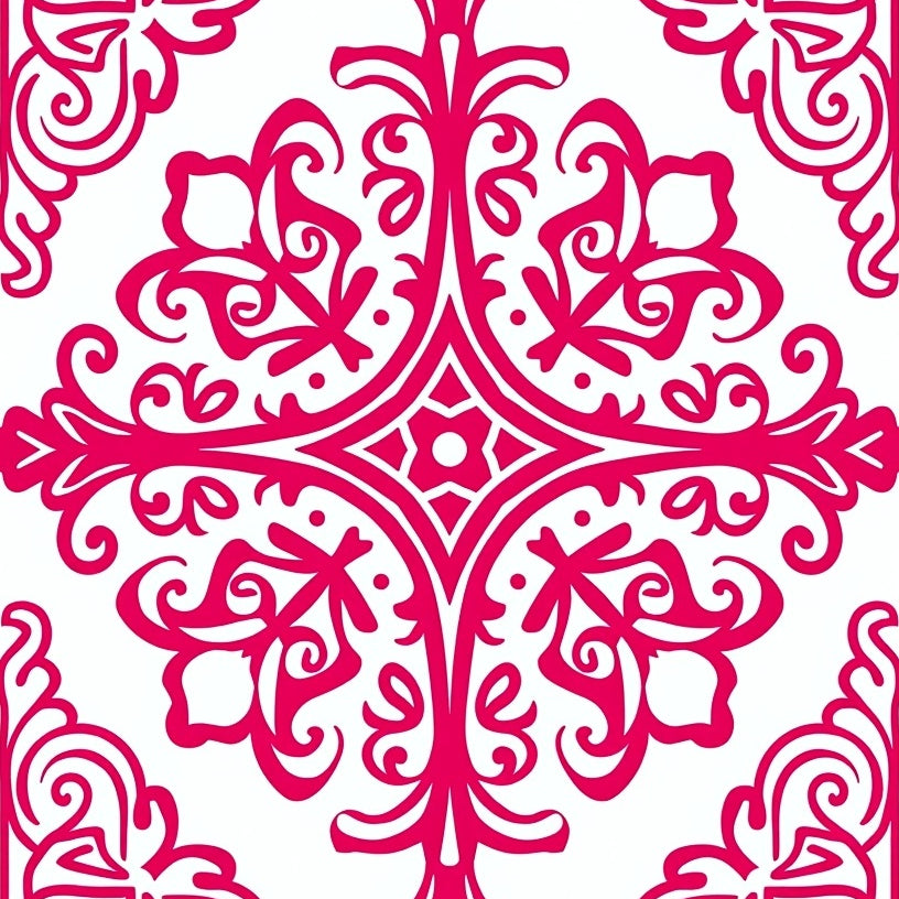 Luxurious Damask Heritage Vintage Ornate Swirl Decorative (Pink)