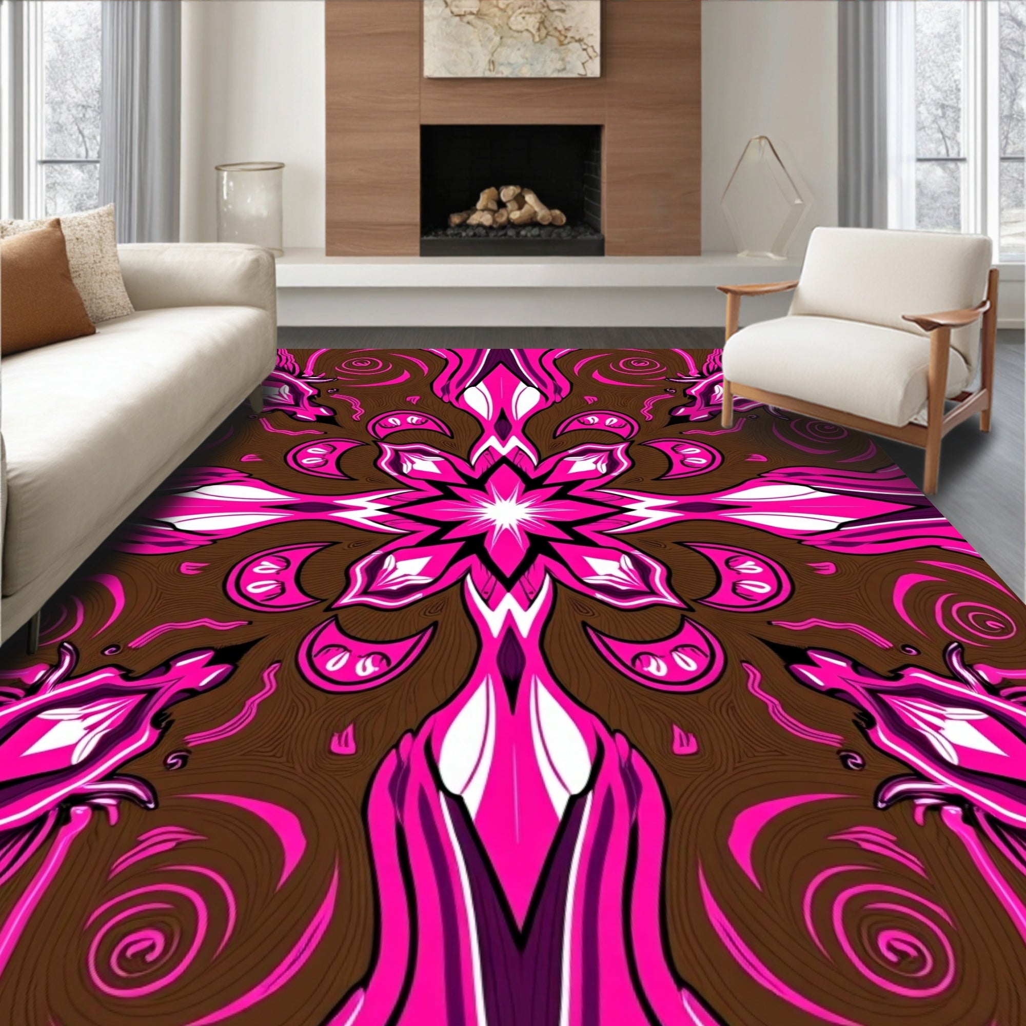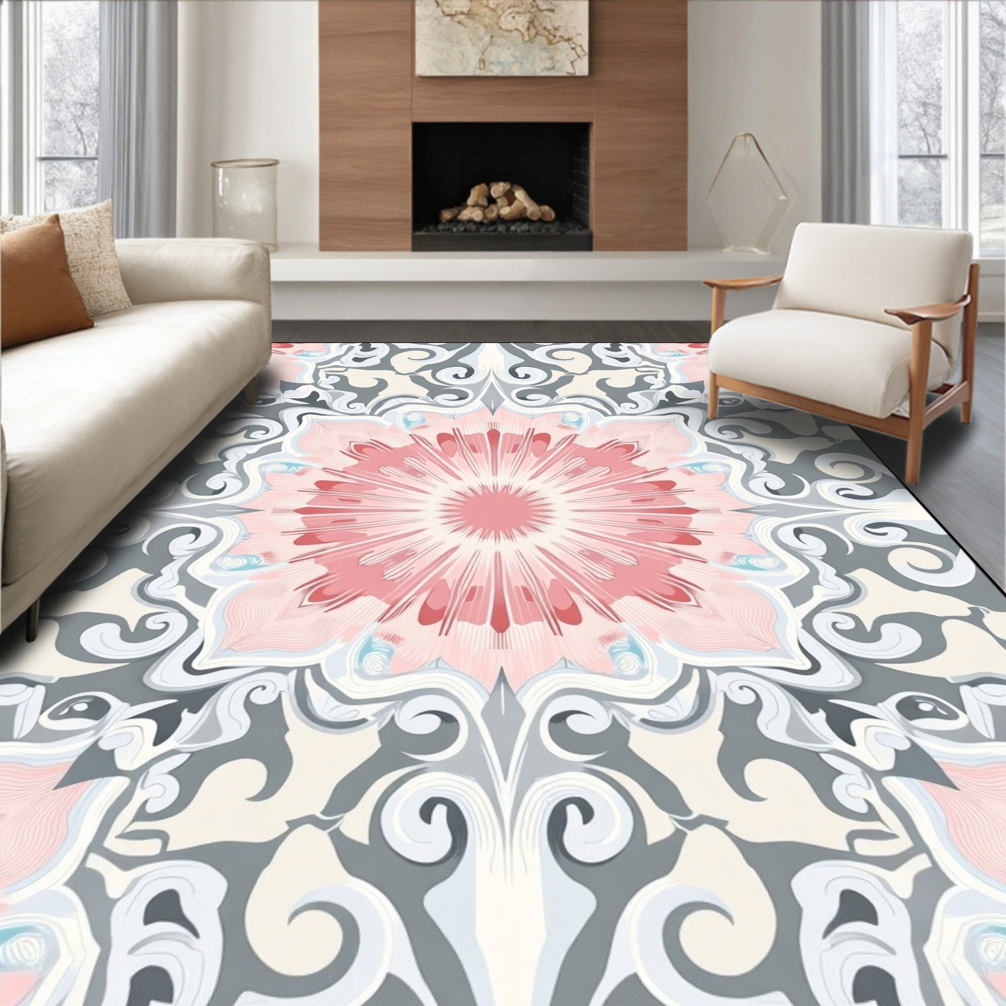Luxurious Velvet Swirl Medallion Contemporary Abstract Artistry (Pink)