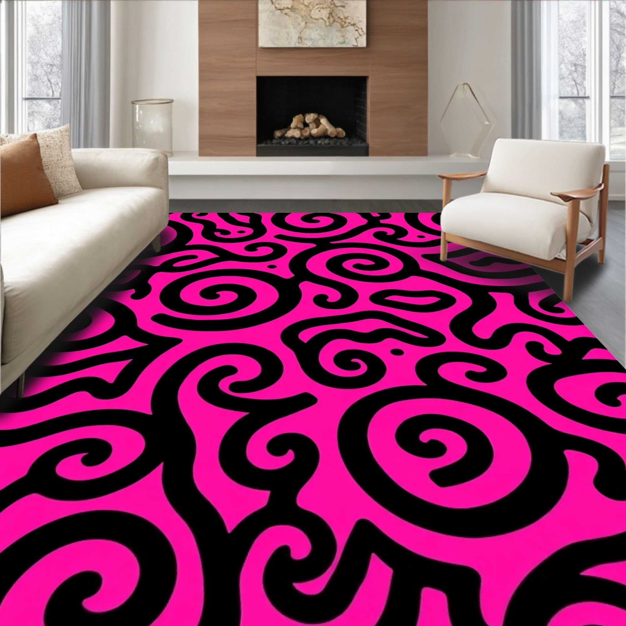 Vibrant Swirl Shag with Abstract Spiral Design (Pink)