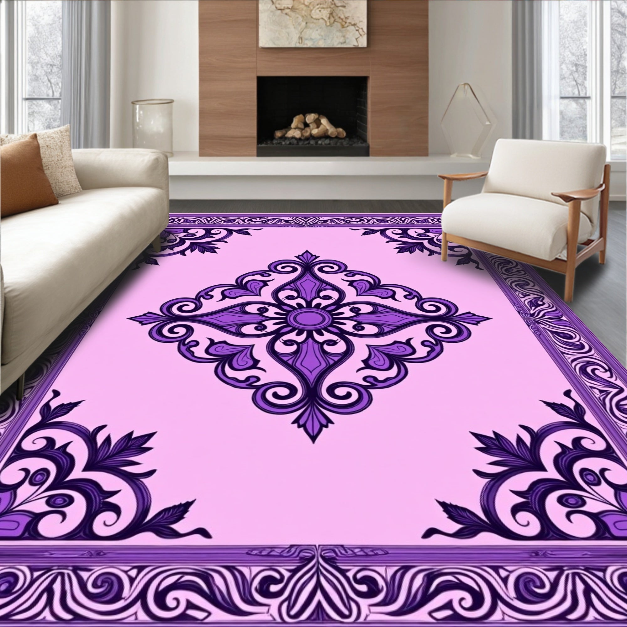 Luxurious Vintage Medallion Damask Ornate Elegant Decorative (Pink)