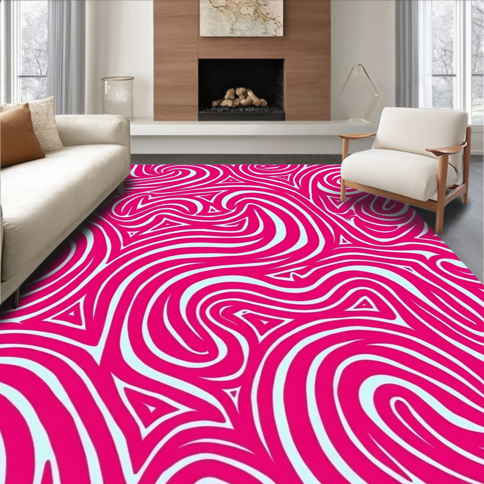 Plush Wavy Curvy Spiral Whimsical Contemporary Modern Artistic (Pink)