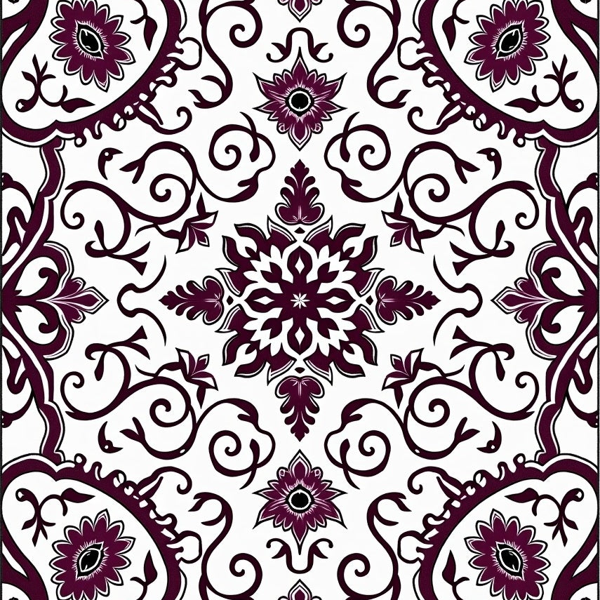 Elegant Swirl Medallion Damask Symphony Sevilla (Purple)