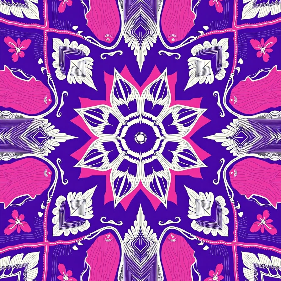Whimsical Starburst Medallion Design with Flourishing Petal Motifs (Purple)