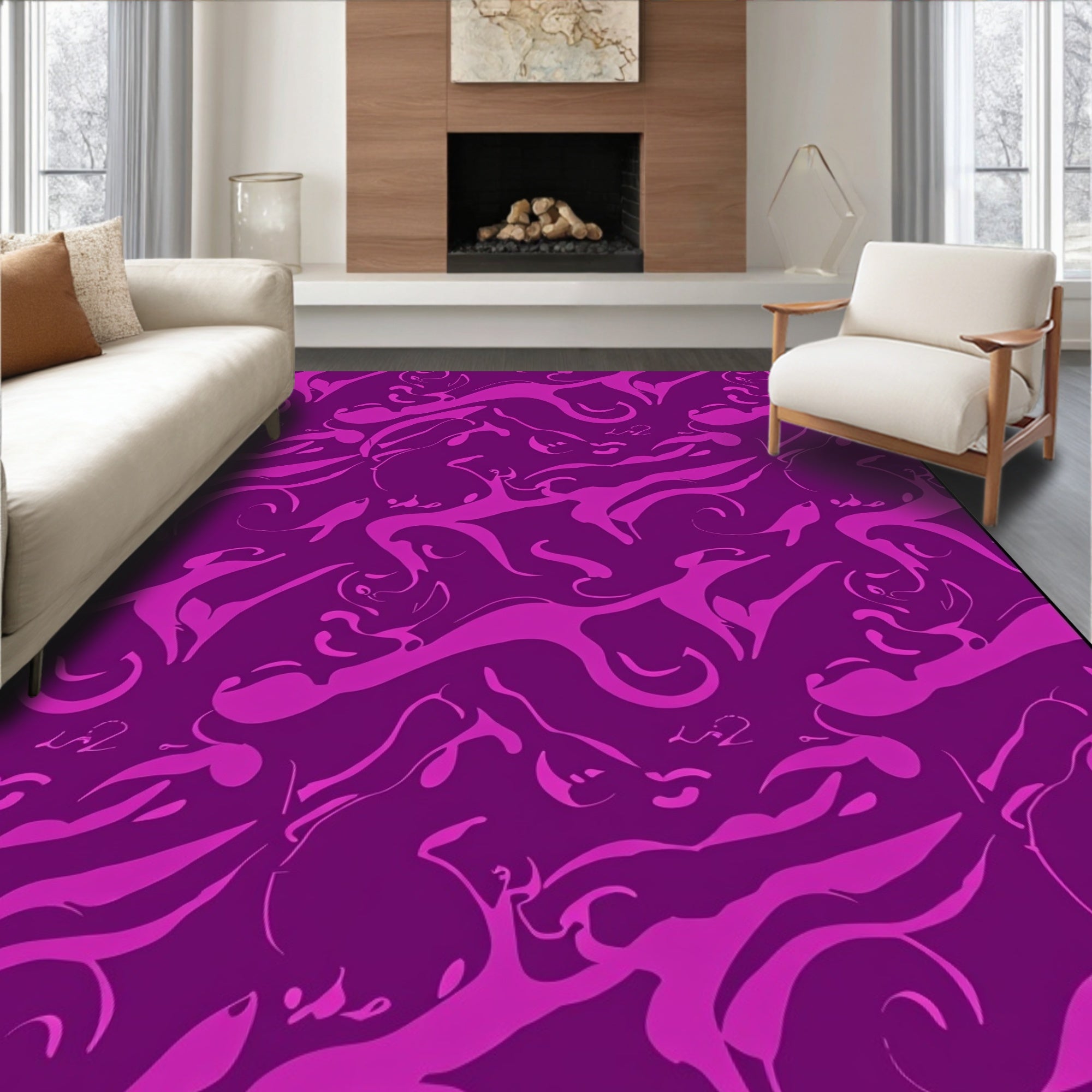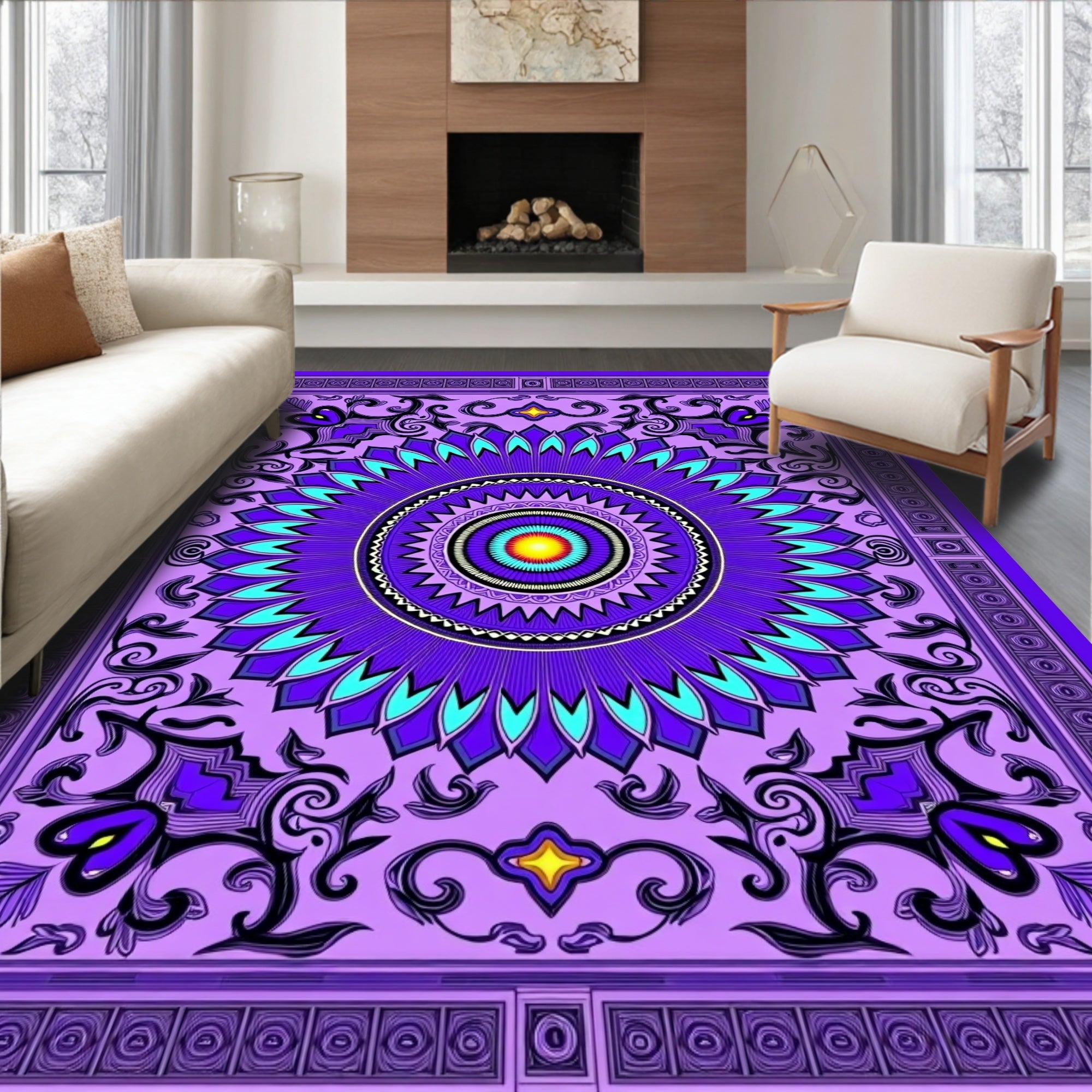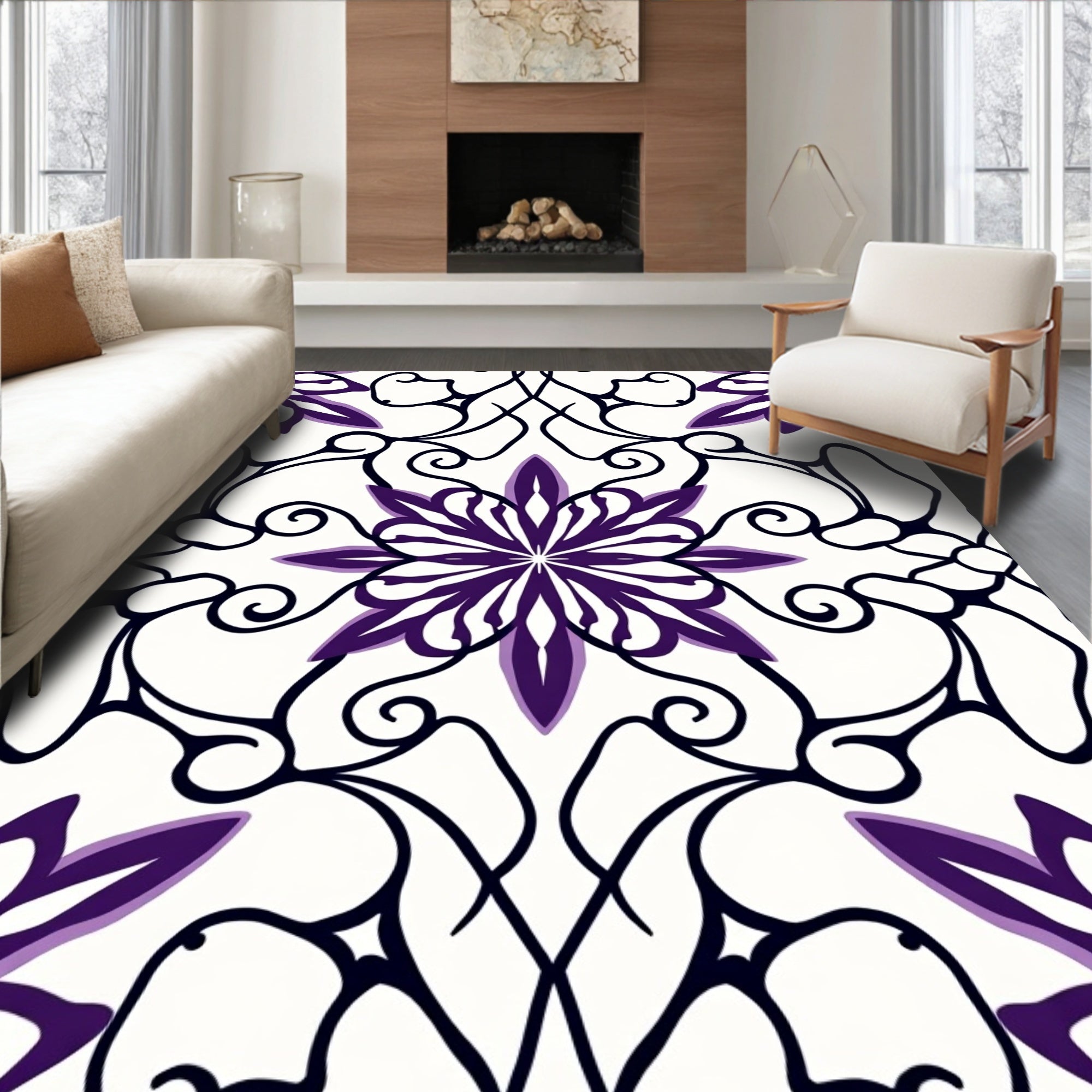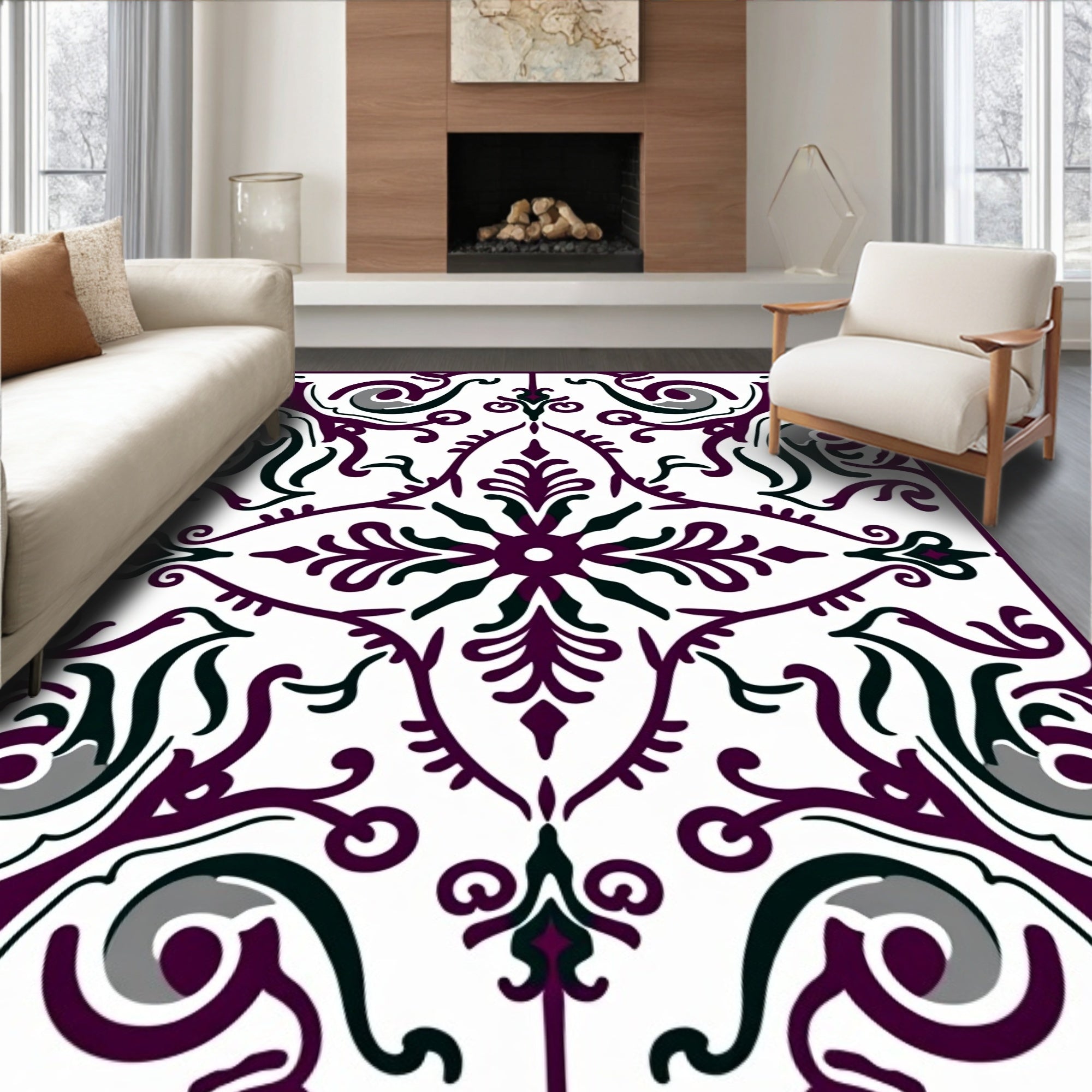 Elegant Swirl Medallion Motif Abstract Contemporary Accent (Purple)