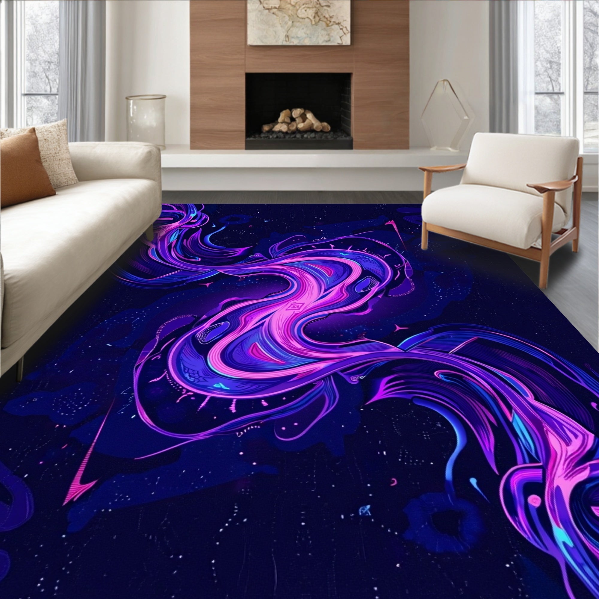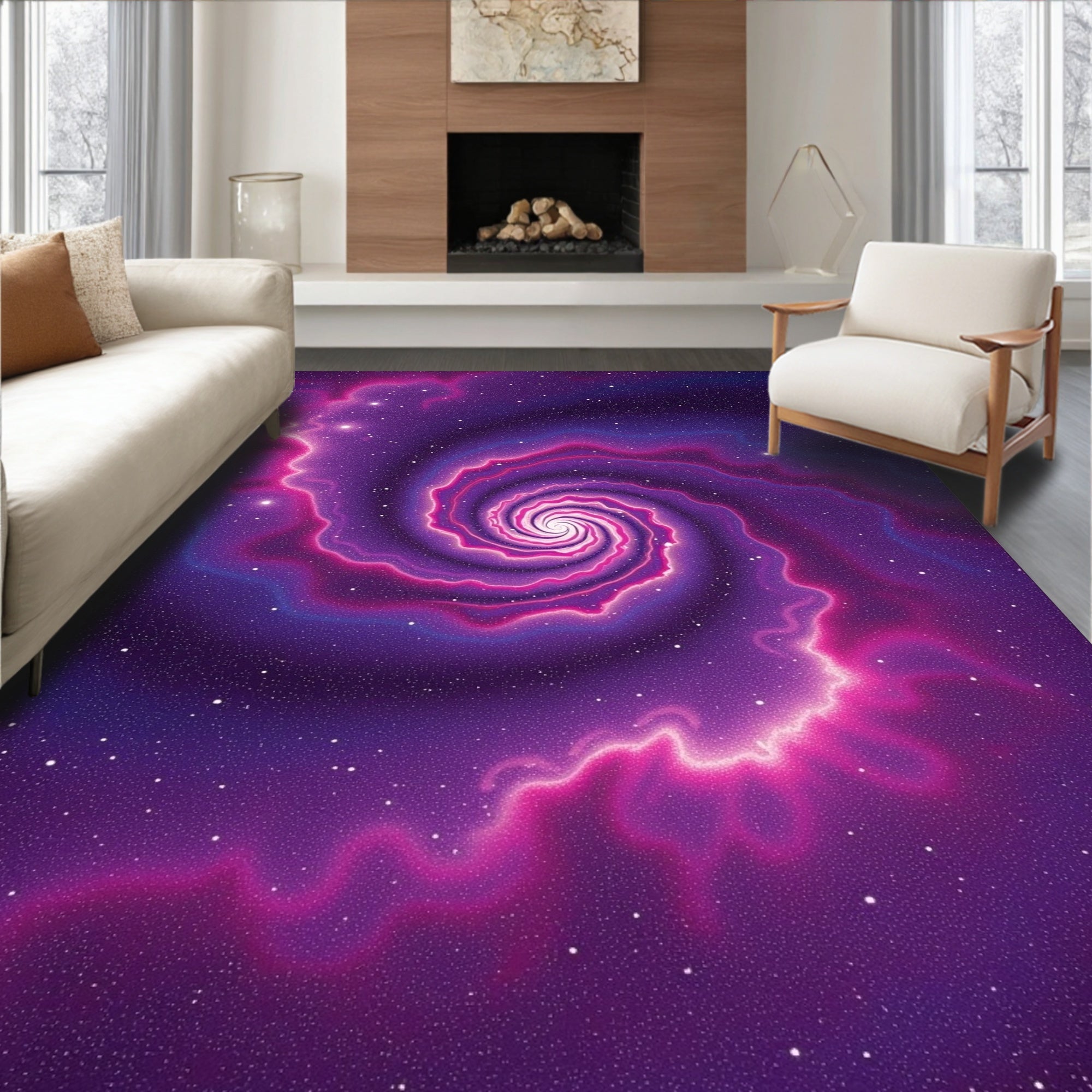 Dreamy Nebula Cosmic Dust Swirl Plush Comfort Underfoot Accent (Purple)