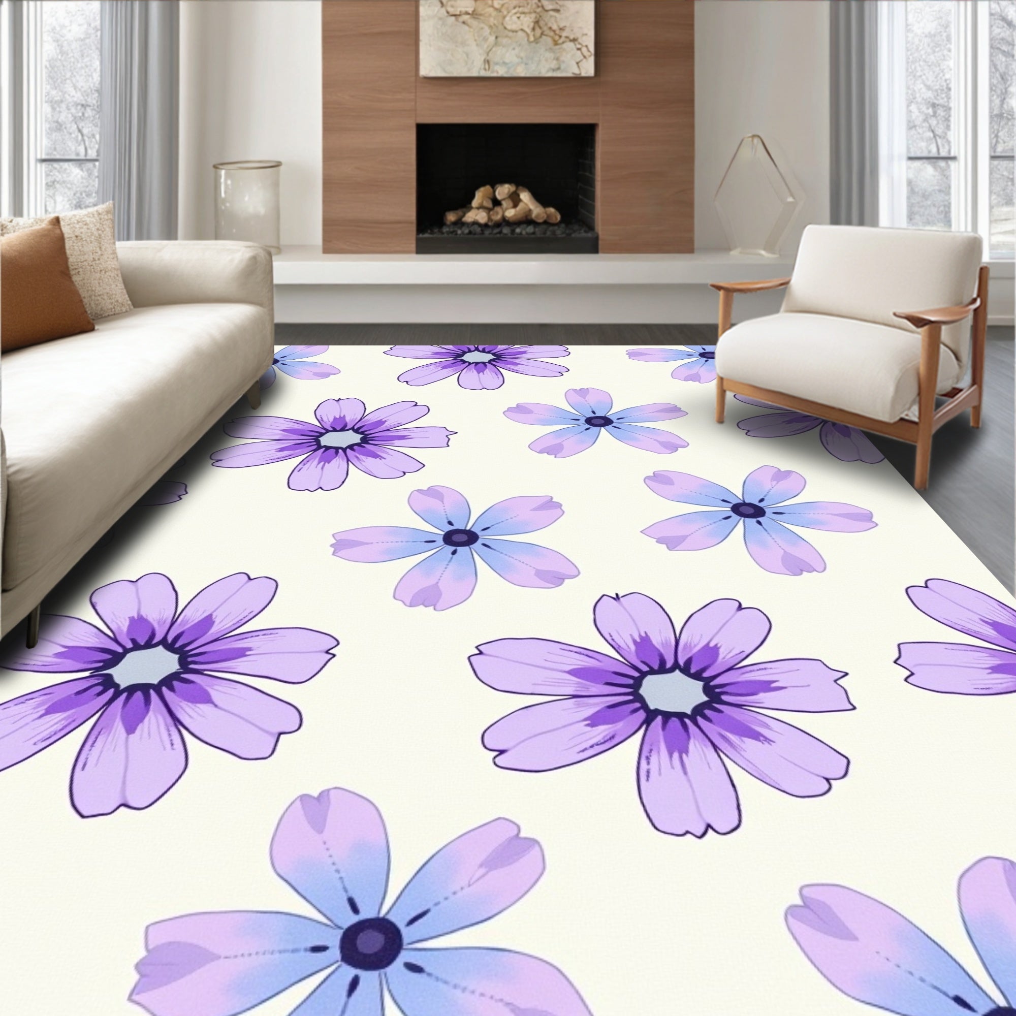 Dreamy Watercolor Petal Mosaic Interlocking Blossom Design (Purple)