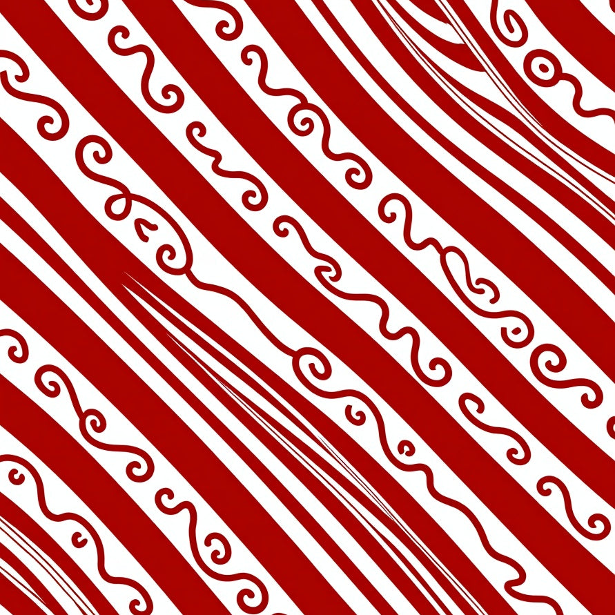 Cane Stripe with Festive Peppermint Swirl Design(Red)