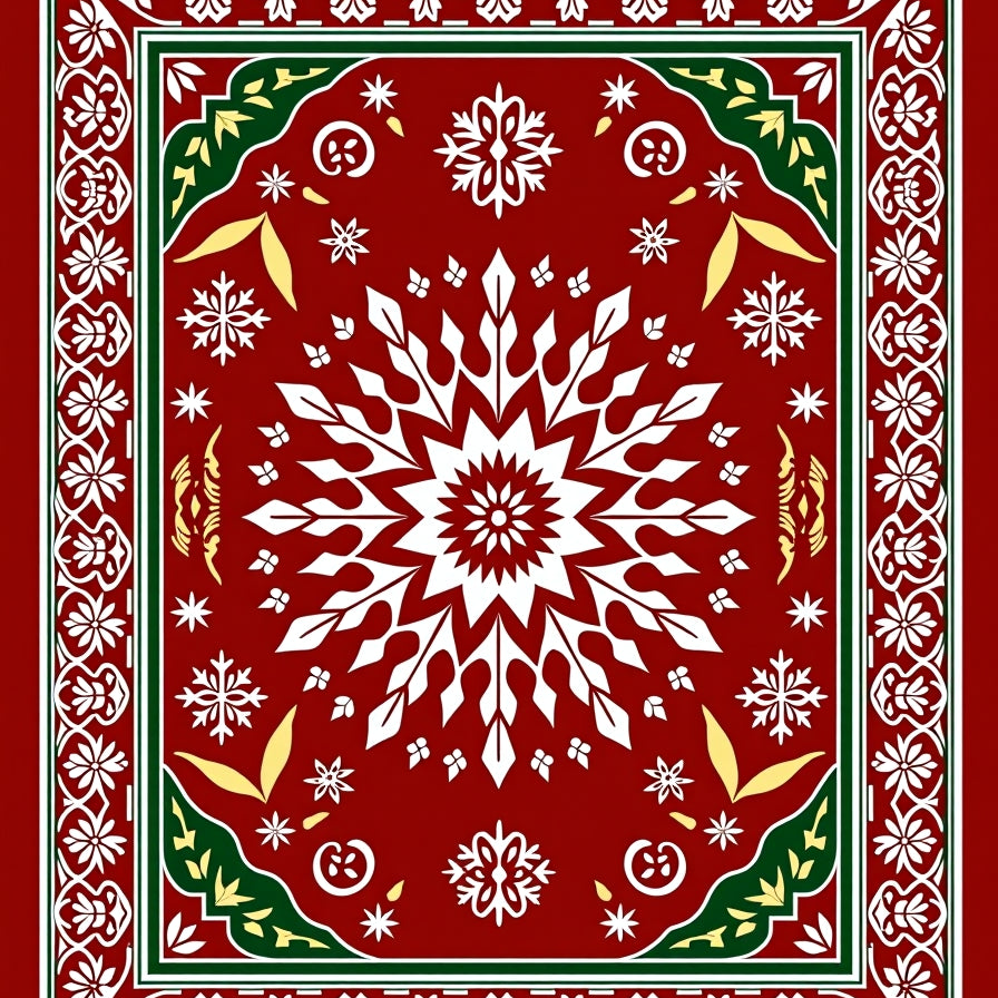 Whimsical Snow Crystal Mosaic with Interlocking Festive Icons(Red)