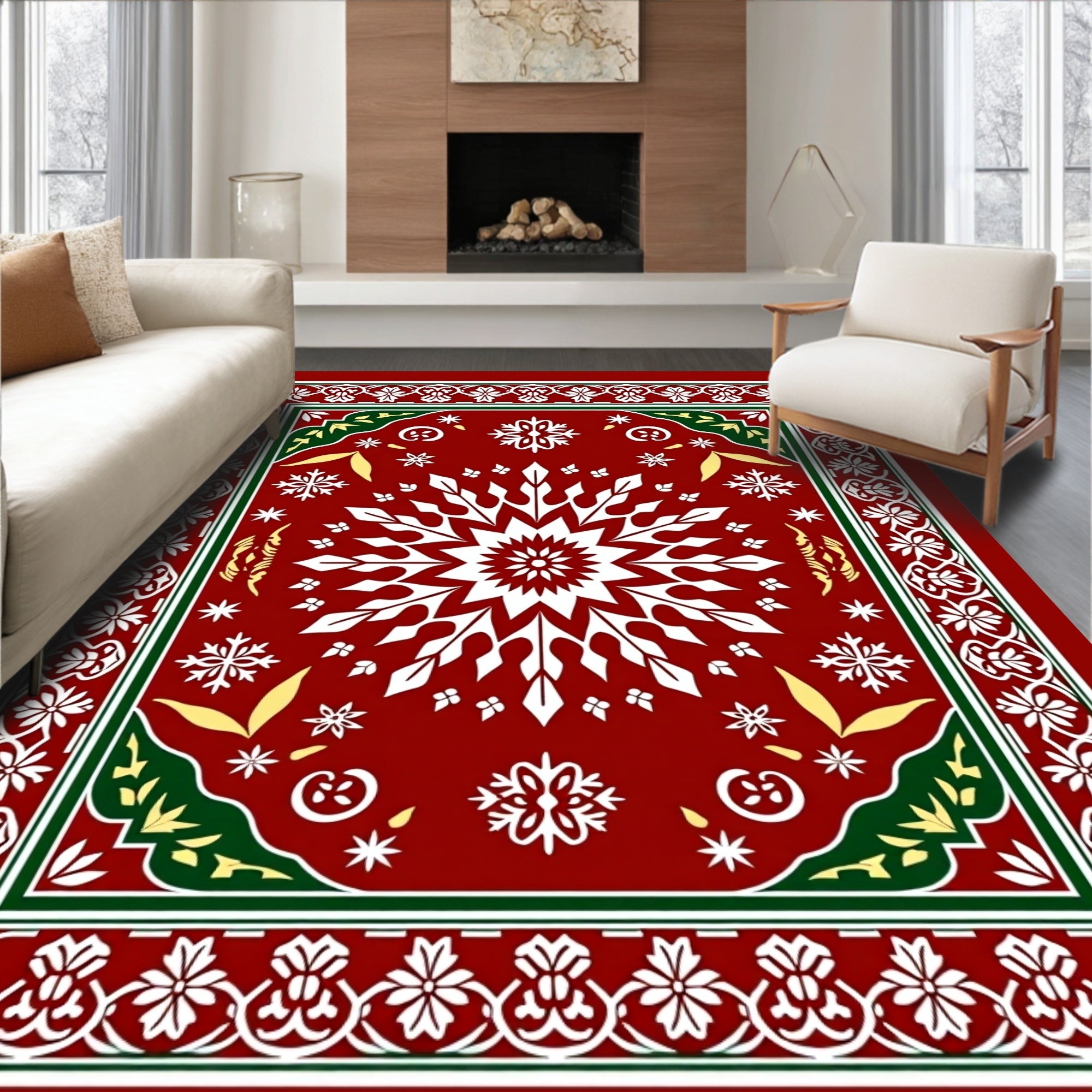Snowflake Medley with Interlocking Festive Motifs and Holly Accents(Red)