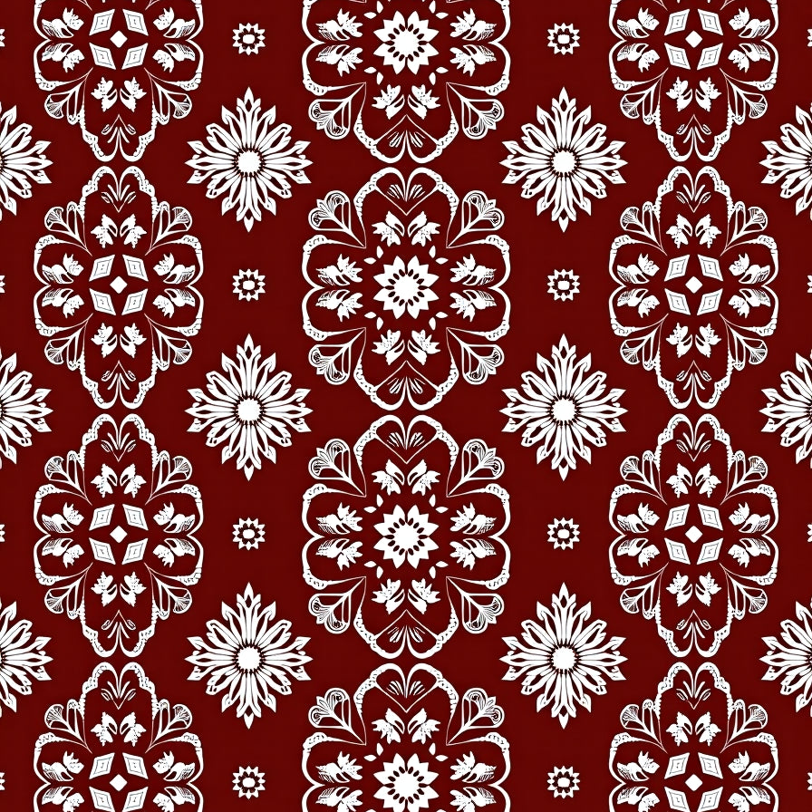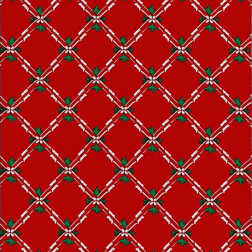 Classic Yuletide Damask with Evergreen Scrollwork(Red)