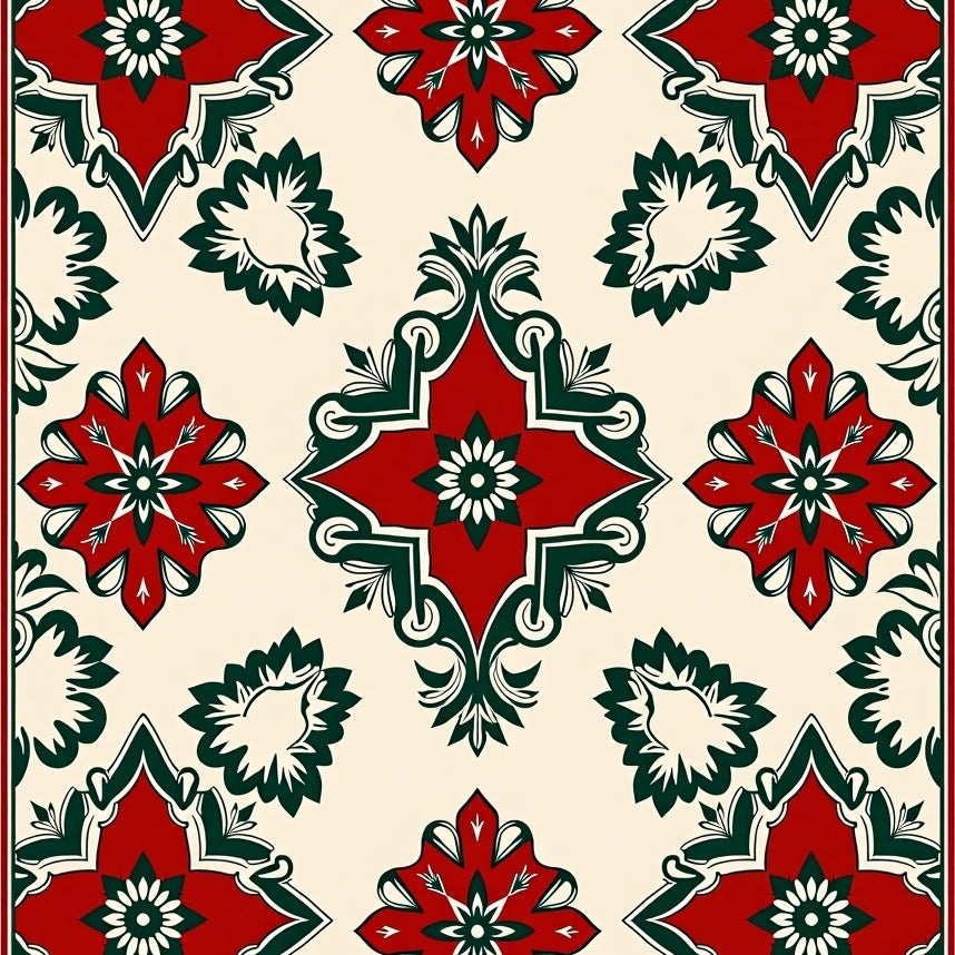 Ornate Holiday Quatrefoil with Seasonal Decorative Details(Red)
