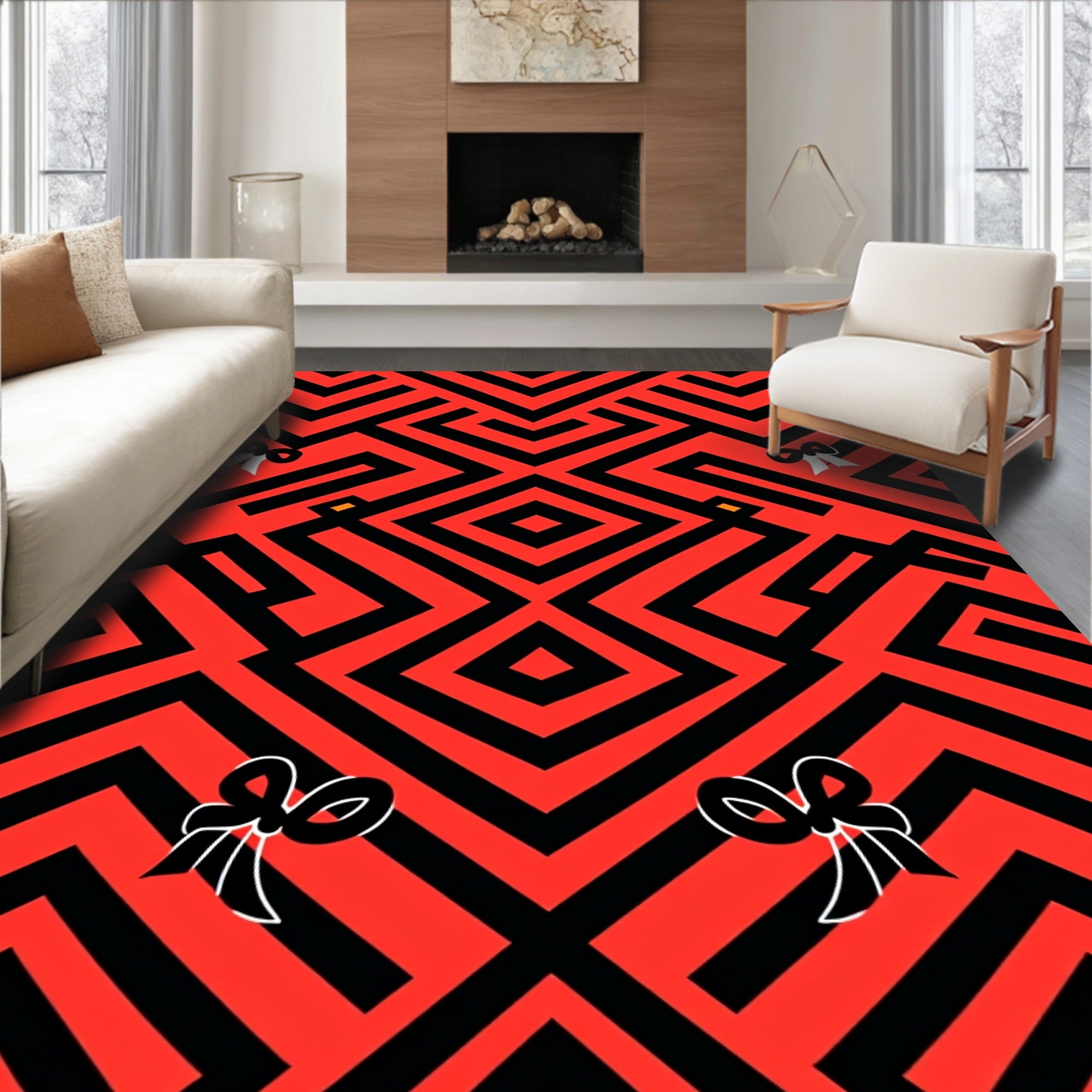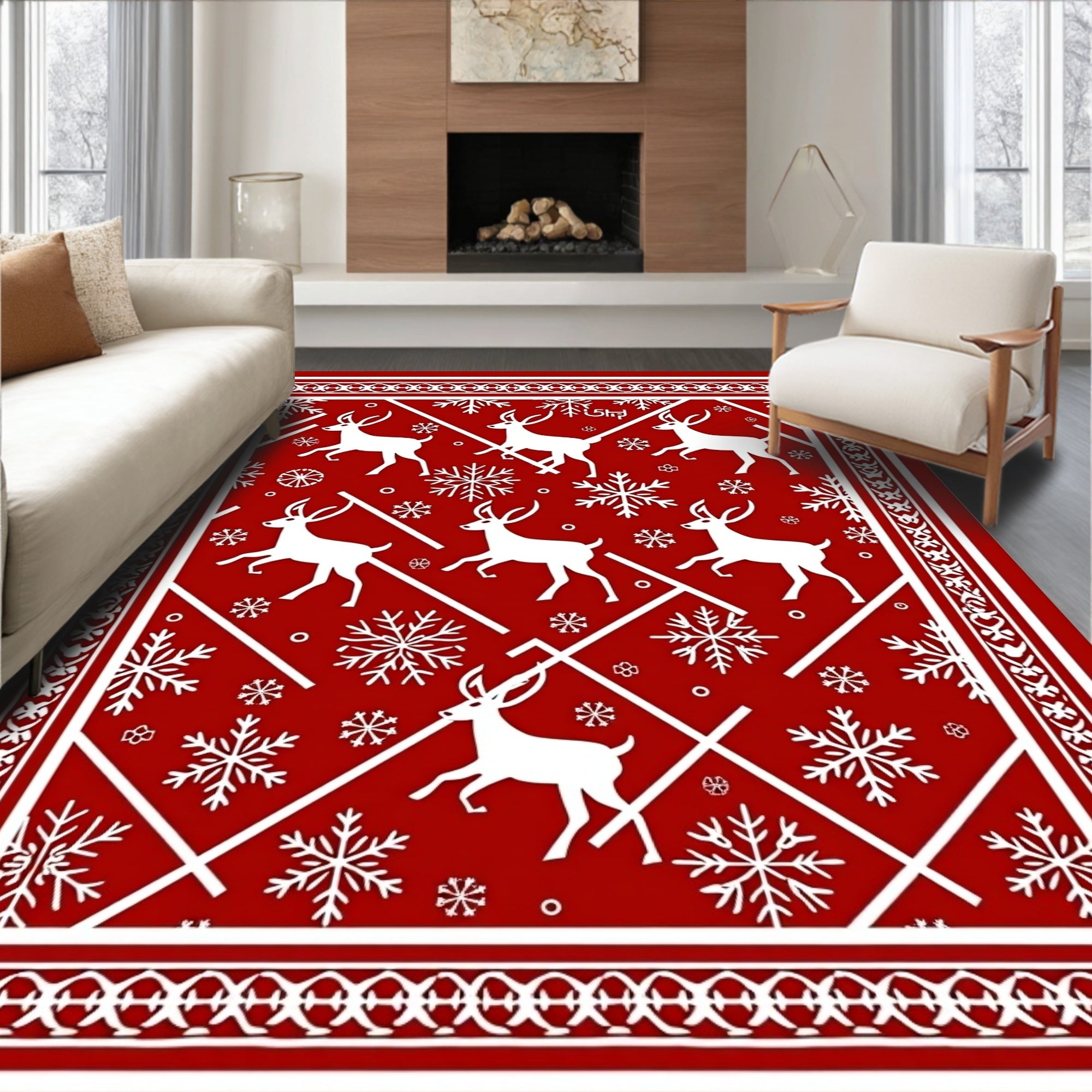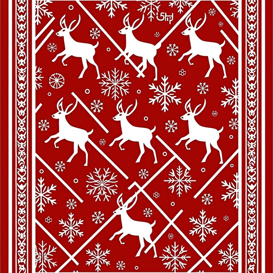 Nordic Stag Snowflake Celebration Floor Covering(Red)