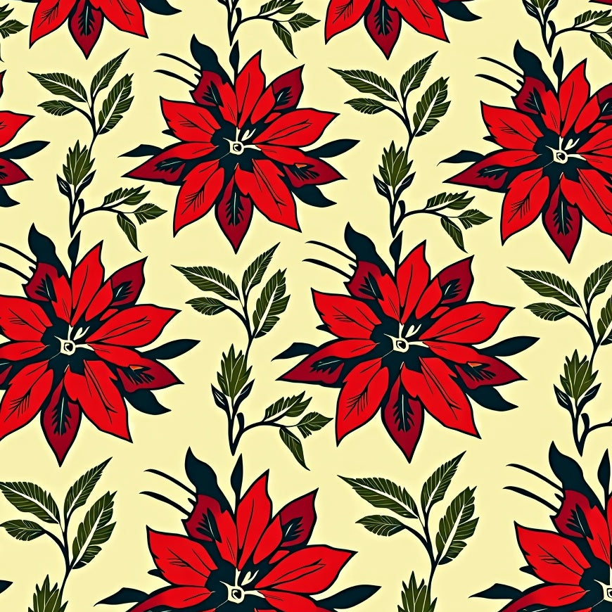 Vintage Poinsettia Bloom Christmas Floral Motif Decorative(Red)