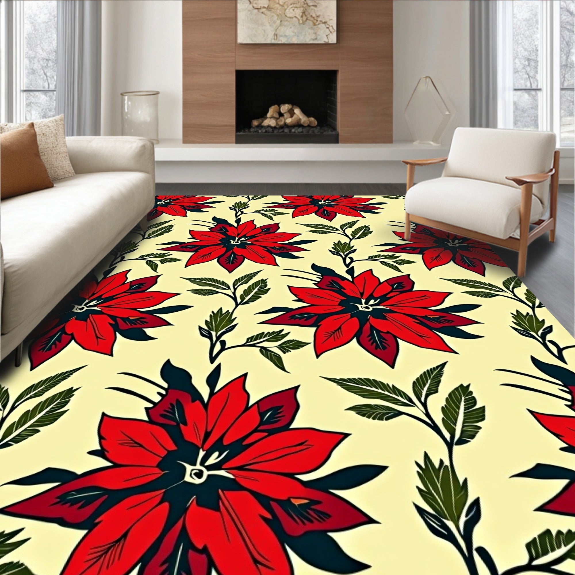 Poinsettia Bloom Seasonal Floor Art(Red)