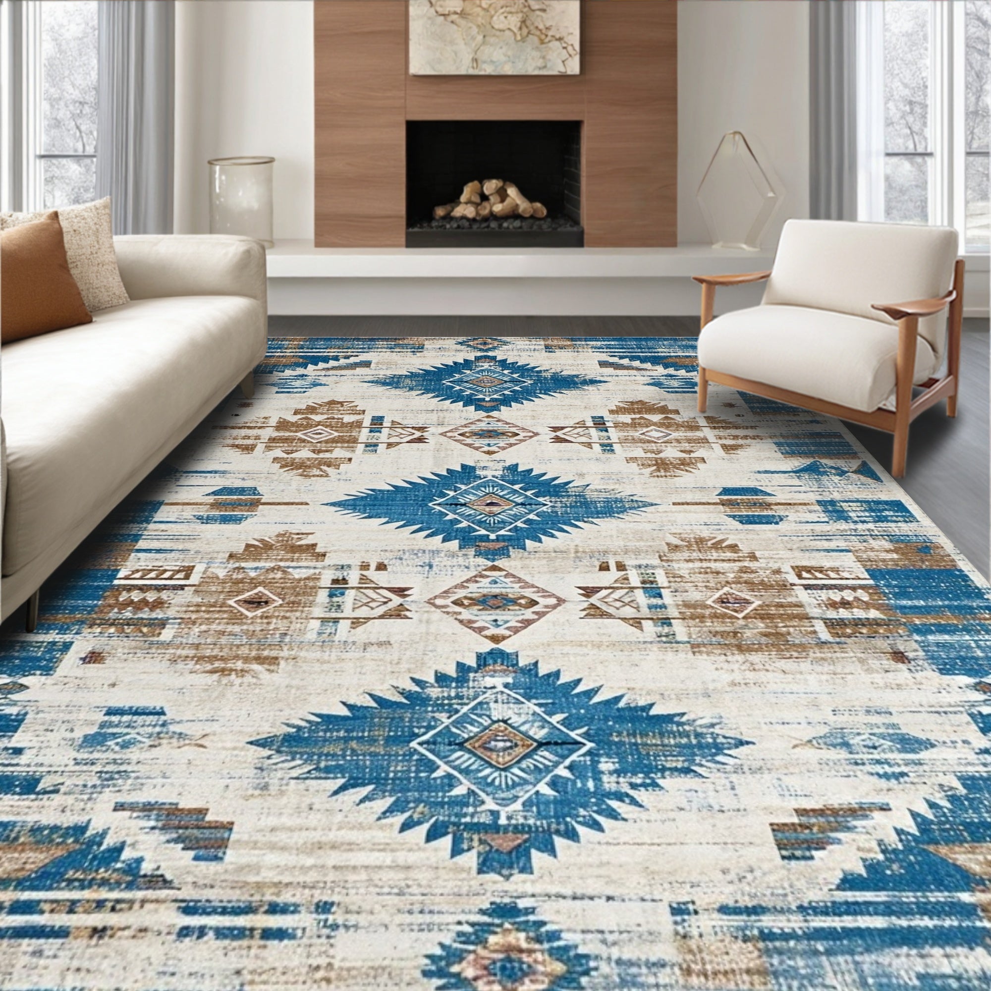Sedona Collection Over Dyed Southwest Area Blue Beige(White)