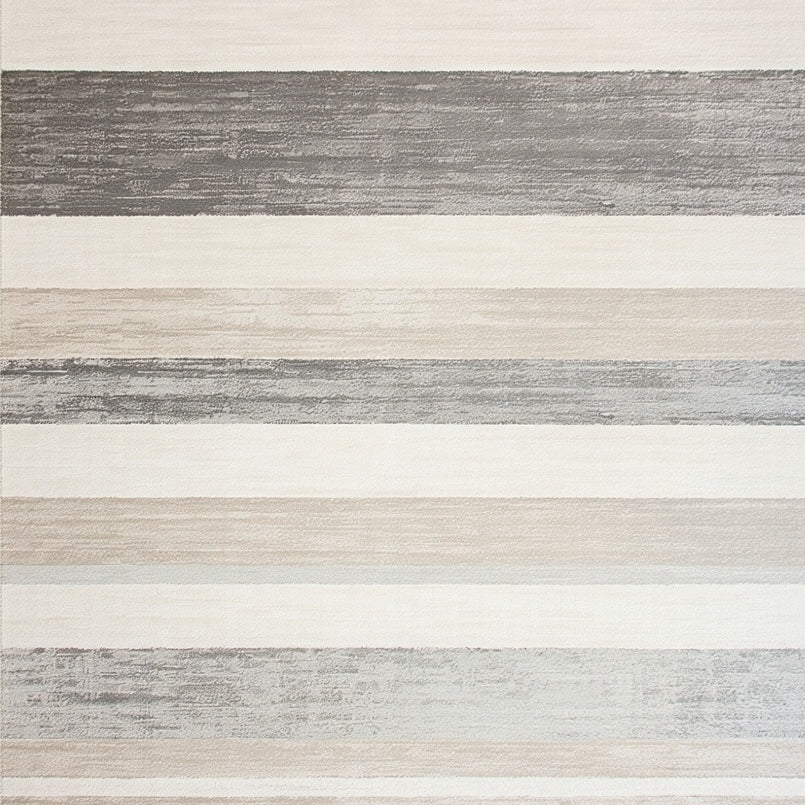 Contemporary Striped Area Runner With Distressed Beige and Slate Accents(Beige)