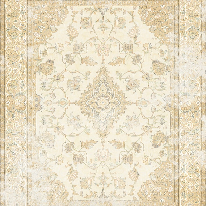 Washed Effect Low Pile Area Featuring Classic Ornamental Medallions(Beige)